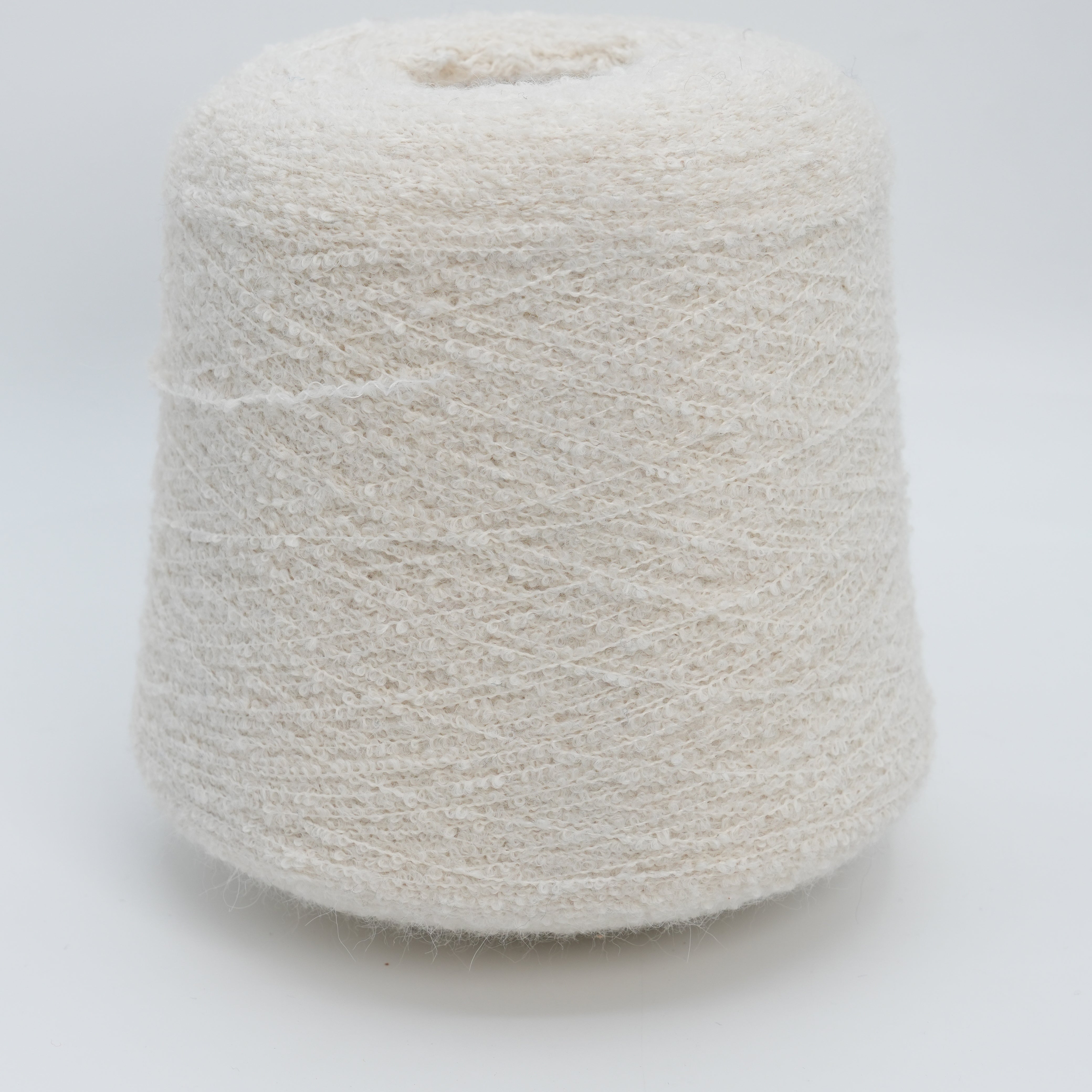 Apache 4500 transitions from fingering to worsted weight. The bouclé alpaca-wool blend creates fabrics with exceptional texture, natural warmth, dimensional quality, and refined appeal across both weights. The looped structure provides excellent coverage and creates garments with architectural interest and luxurious softness. Ideal for sweaters, cardigans, accessories, and projects where the distinctive bouclé texture adds character, warmth, and visual interest.