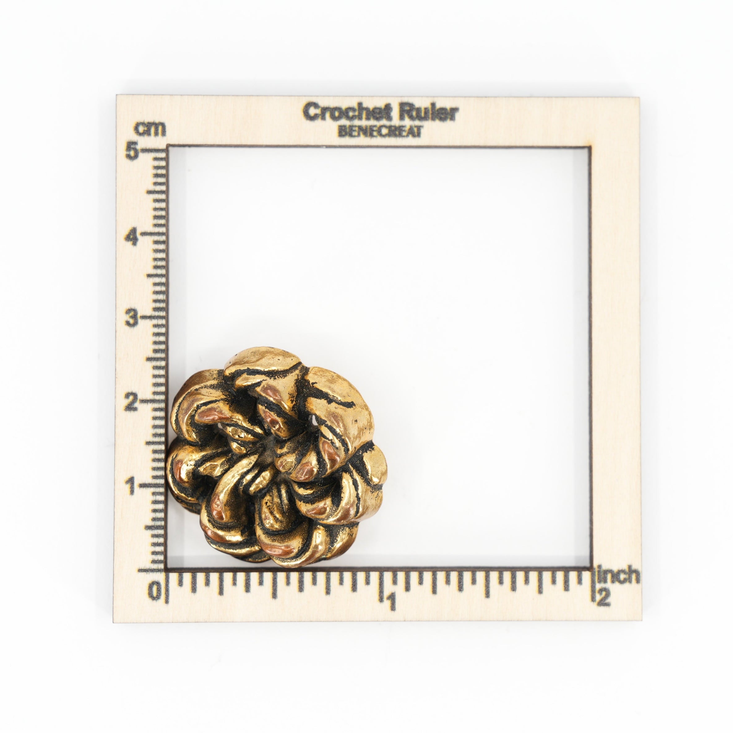 Richly sculpted and full of character, this set of seven vintage buttons features a voluminous floral design reminiscent of baroque ornamentation. The petals swirl in deep relief, accented by dark patina that brings out every curve and fold. Perfect for coats, cardigans, or any project where dramatic texture and vintage opulence are welcome.