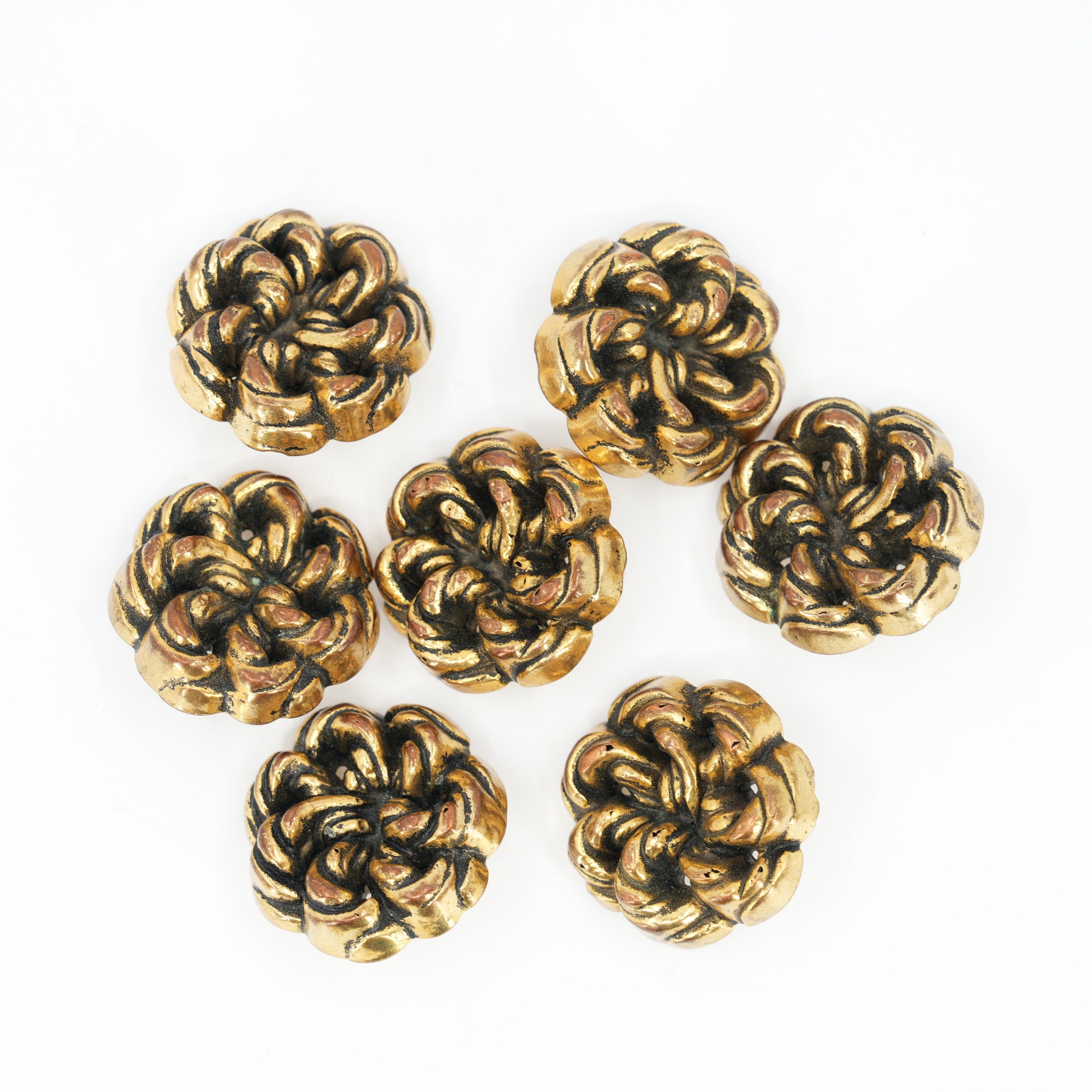 Baroque Floral Buttons, 2.6 cm (1.02 in) – Antique Gold Tone Metal (Set of 7)