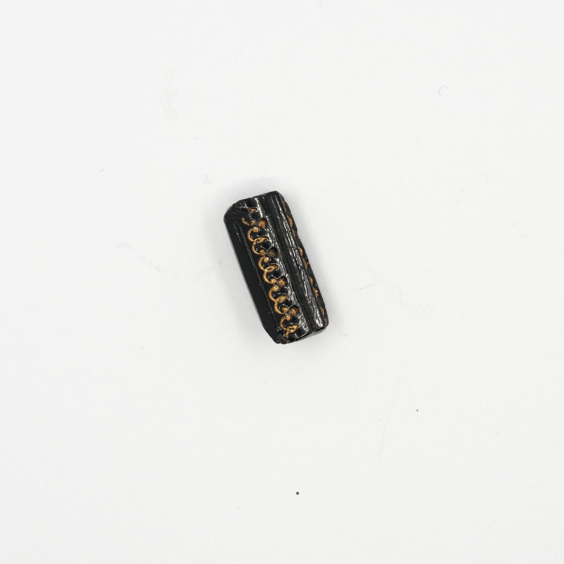 Black & Gold Rectangular Buttons, 1.9 × 0.9 cm (0.75 × 0.35 in) – Molded Plastic with Gilded Detail (Set of 11)