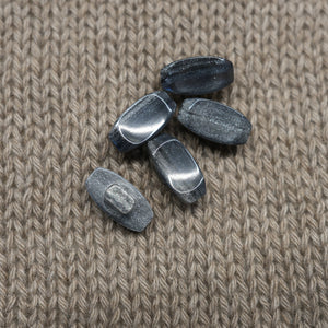 Sophisticated Italian rectangular button with a glossy graphite finish and subtle metallic shimmer. The modern elongated shape and smooth surface give it a refined, contemporary look — ideal for coats, cardigans, and designer knitwear.