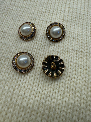 Luxurious Italian button with a pearl-style center encircled by a sparkling ring of clear rhinestones set in a polished gold-tone base. This elegant design adds a refined, couture touch — perfect for cardigans, coats, blazers, and statement pieces.
