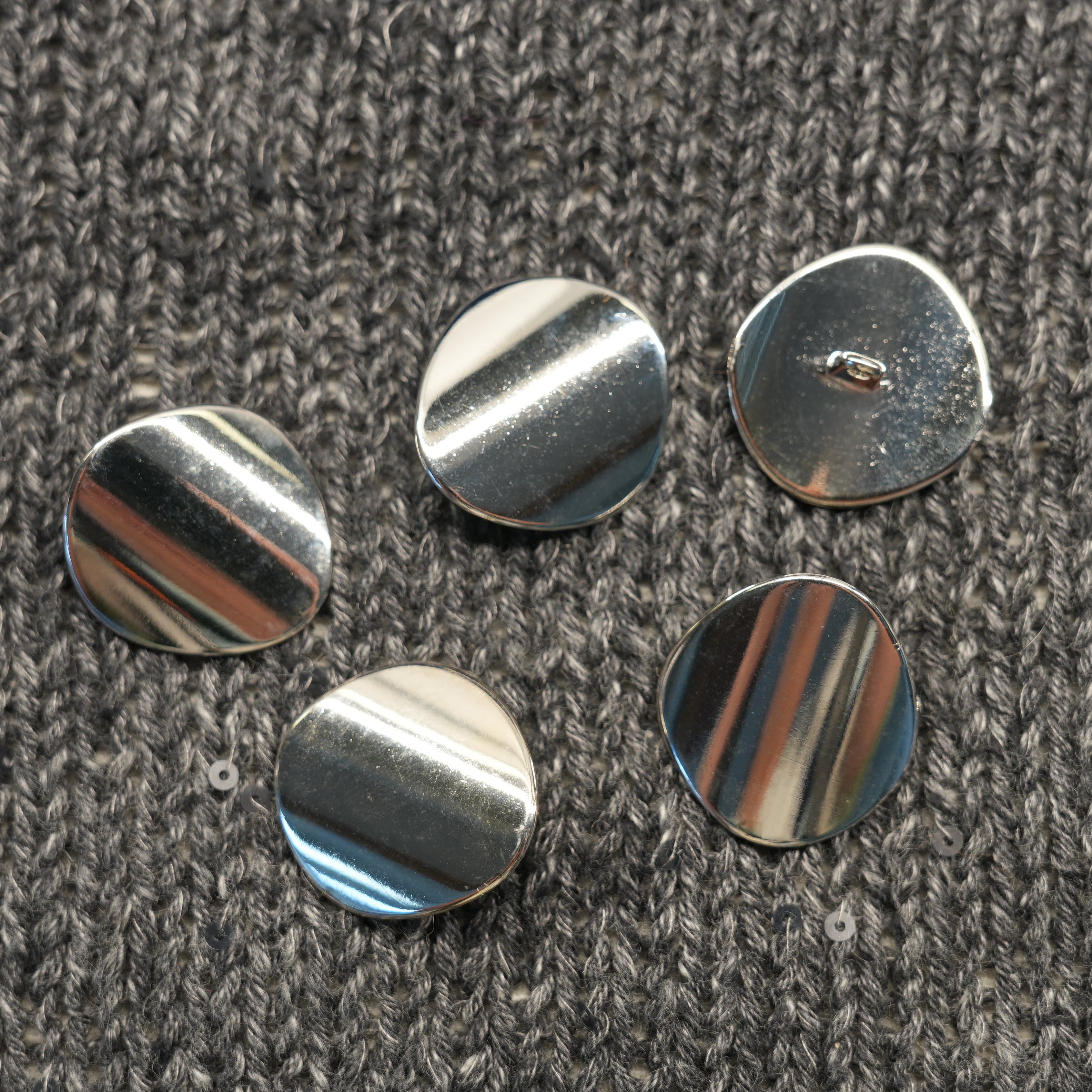 High-quality Italian button with a polished metallic-look finish and slightly irregular round shape.