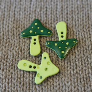Whimsical German decorative button shaped like a forest mushroom, crafted with precise detailing and a smooth glossy surface. Features a two-hole attachment for secure sewing and easy application, making it an ideal accent for children’s garments, seasonal knits, and creative craft projects.