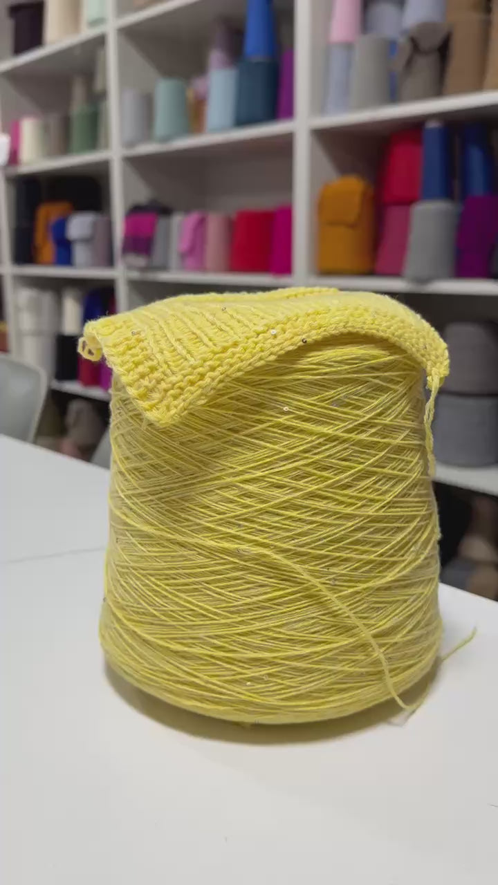 Airy, refined, and luminous — Cashwool from G&G Filati blends pure cashmere and fine merino wool into an ultra-soft, flowing yarn delicately adorned with small shimmering sequins. The soft blue base glows with quiet sophistication, while the sequins add a touch of playful sparkle. A perfect choice for light yet expressive projects — from elegant sweaters to ethereal evening shawls.