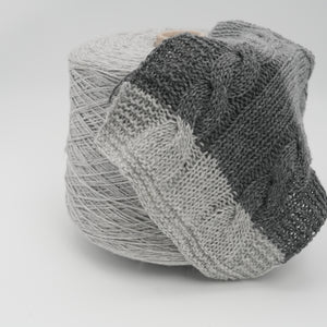 Divino 3/14 by G&G Filati is a luxurious Italian yarn that combines the featherlight elegance of fine silk with the indulgent softness of carded cashmere. With its delicate melange and blooming halo after washing, this yarn drapes like silk and insulates like a cloud. The Smoky Silk shade is a muted mid-gray touched with warm beige undertones — understated, serene, and endlessly wearable.