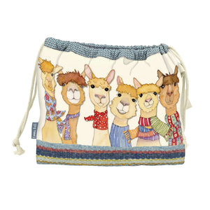 It works beautifully for knitting and crochet projects, yarn, tools, stitch markers, scissors, and other essentials any maker likes to keep together. The drawstring closure keeps contents secure, while a small hanging loop allows for easy storage at home.