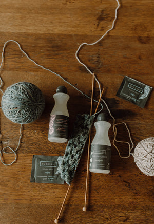 Eucalan is a no-rinse delicate wash specifically formulated for woolens, knits, and fine fabrics. The lanolin-enriched formula gently releases dirt into the wash basin, cleaning fibers without the need for a final rinse — while the residual lanolin fortifies and conditions your garments with every wash. The environmentally friendly formula also acts as a natural dust mite deterrent and anti-static treatment, keeping your handknits fresh, soft, and beautifully maintained.