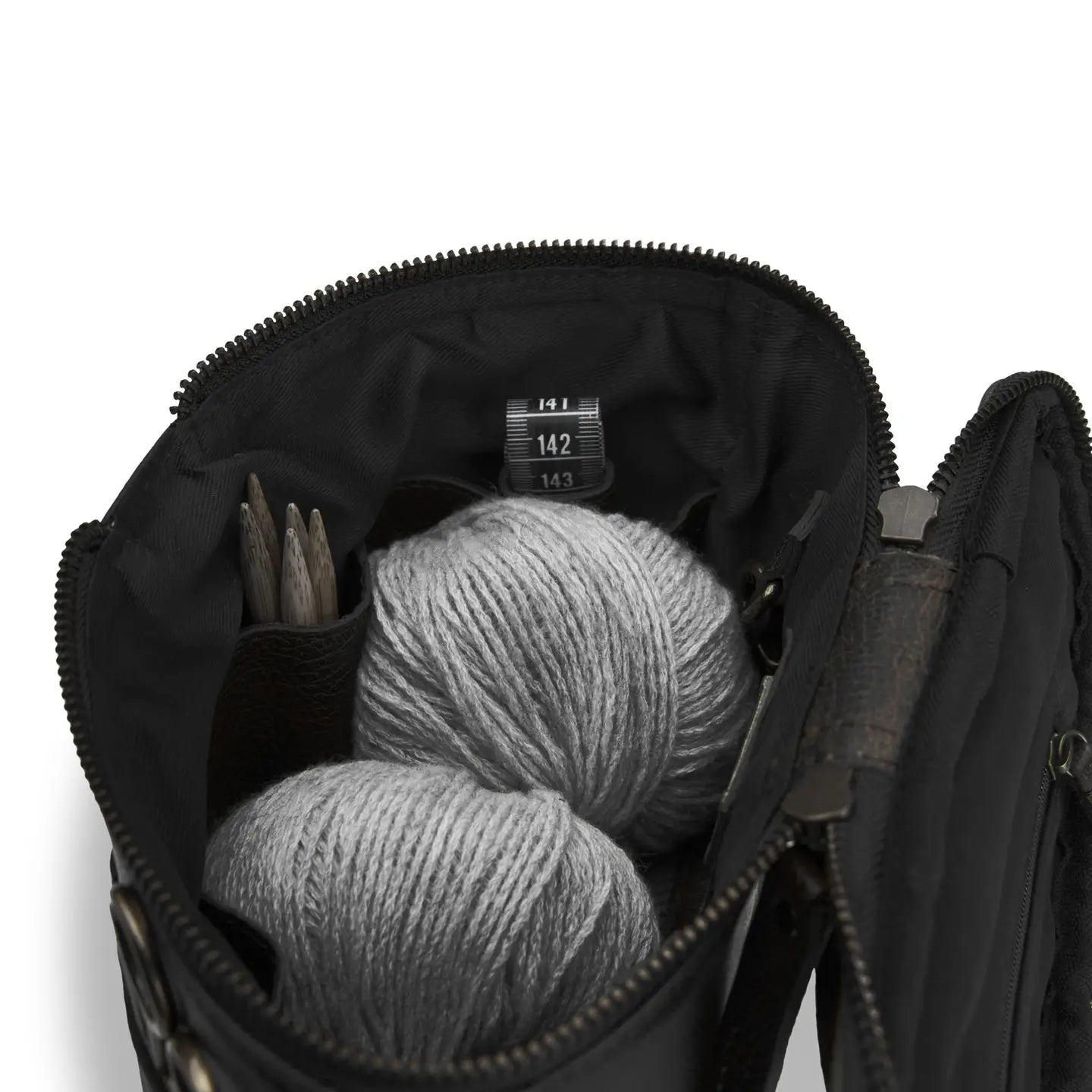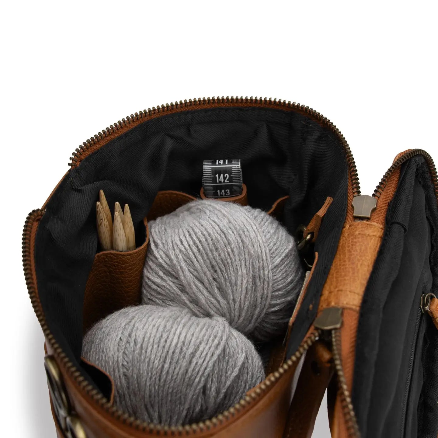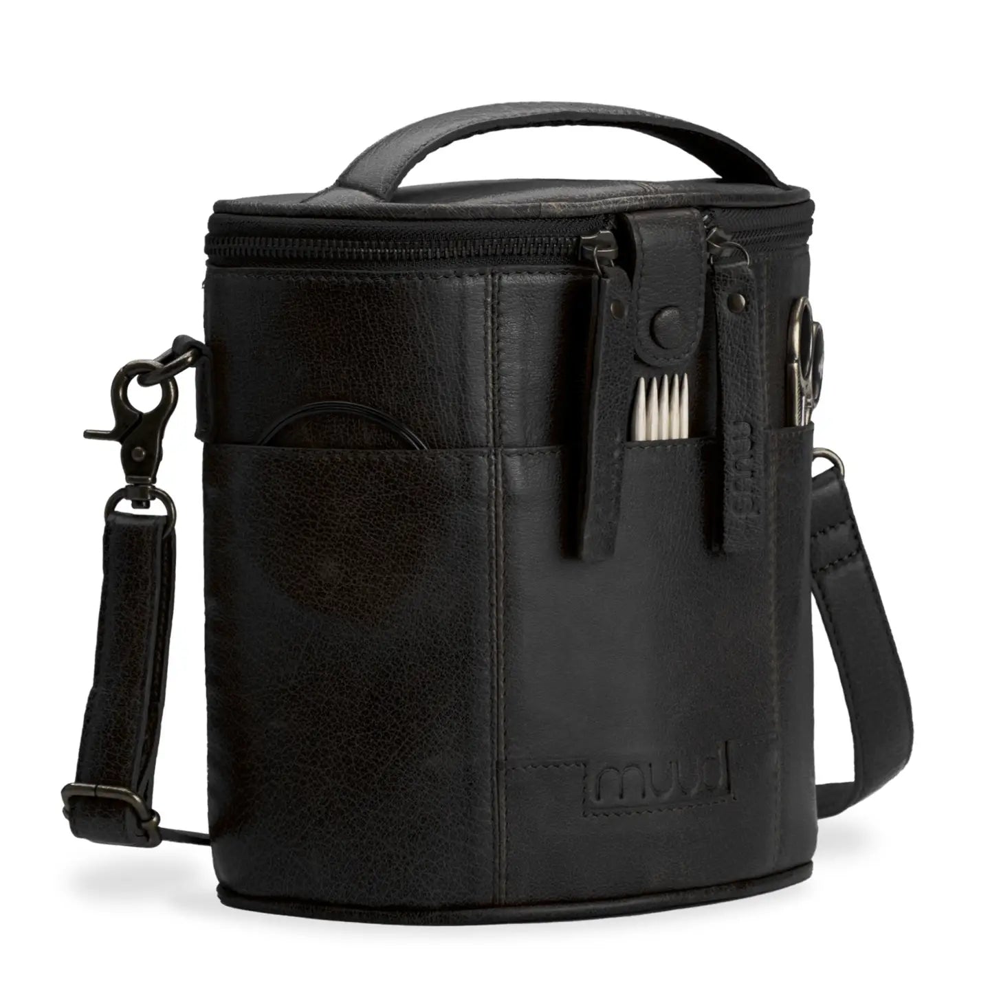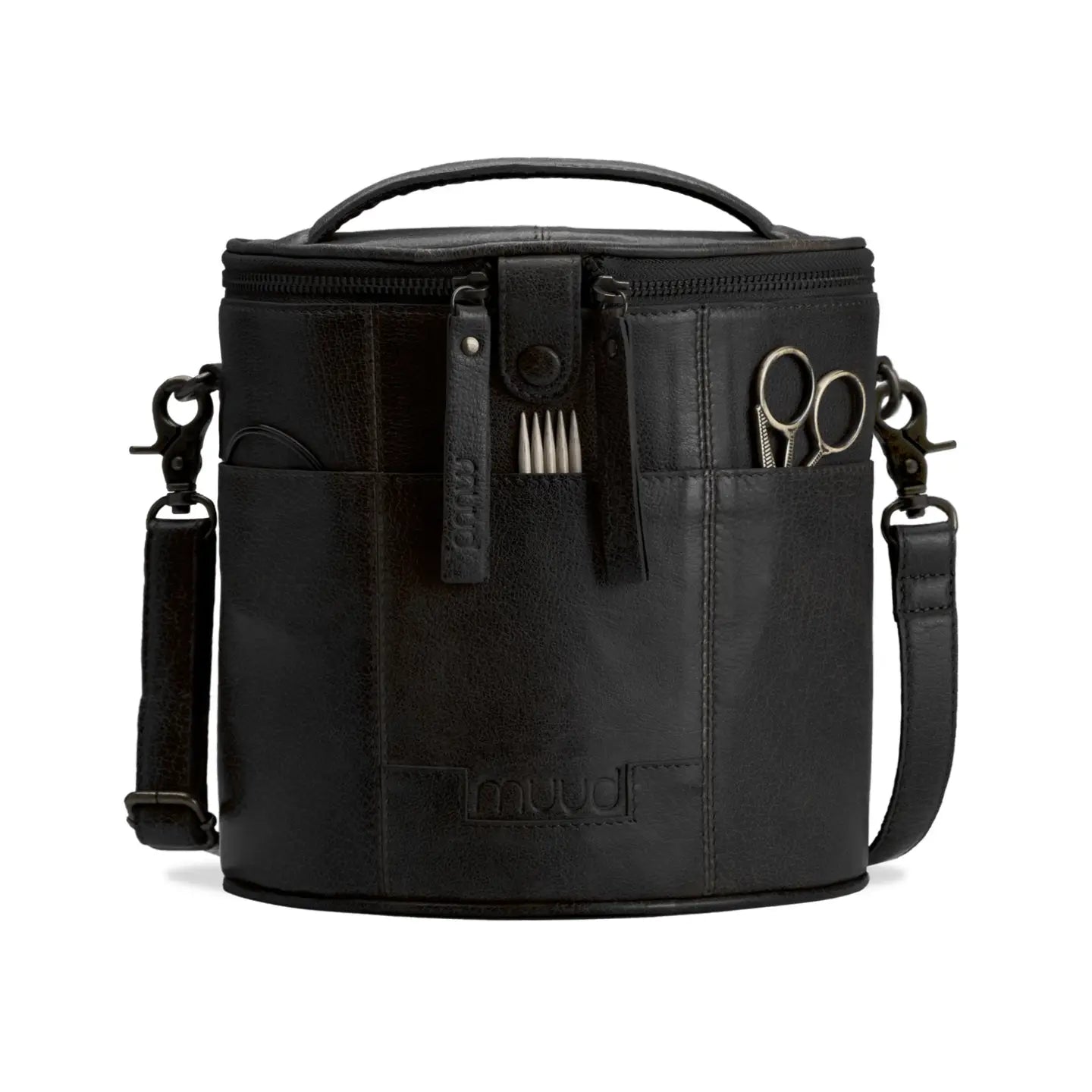 Grace from Muud is an elegant and functional leather project bag, designed in a distinctive crescent shape. Perfect for storing and transporting knitting and crochet projects, it combines practical features with a stylish silhouette.