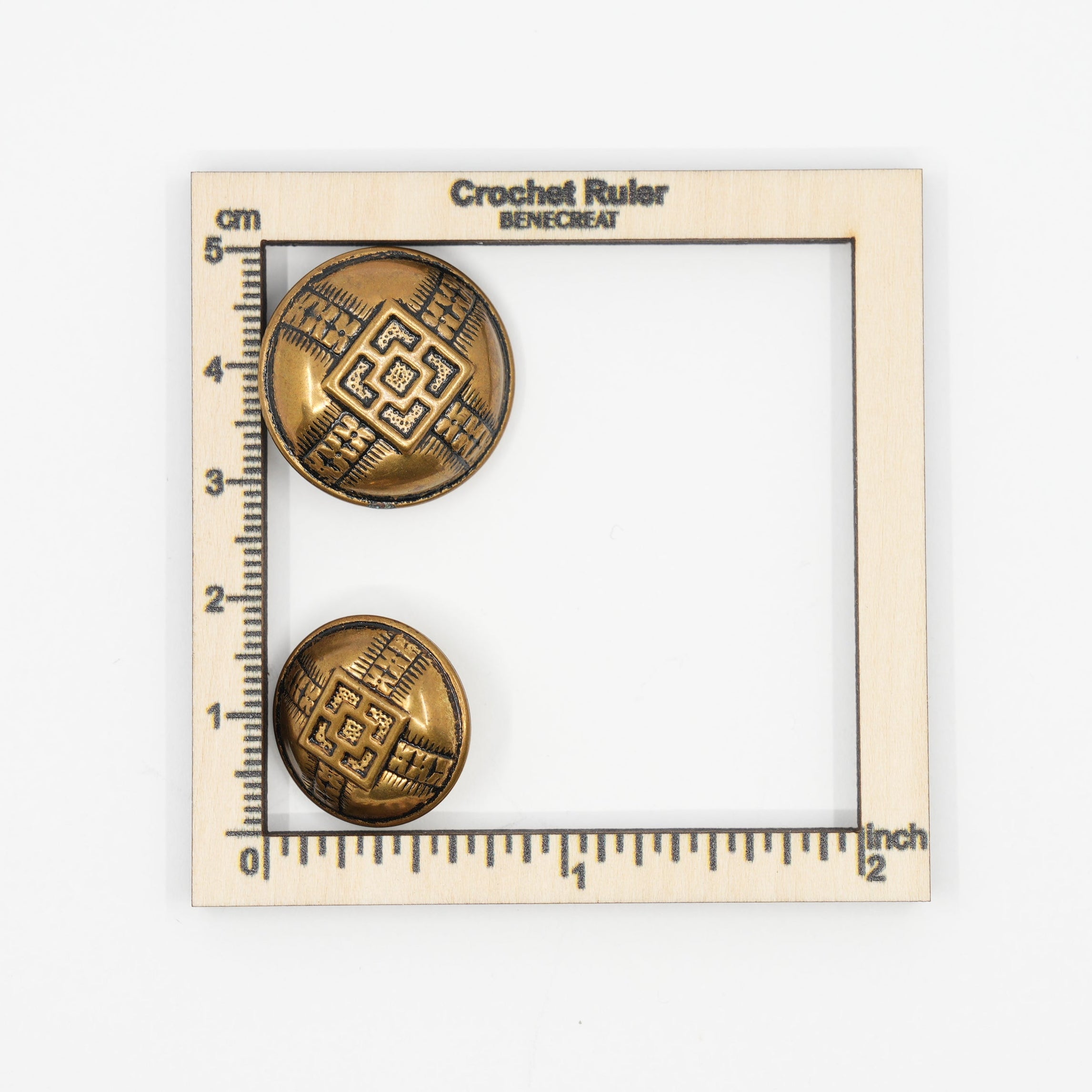 Graduated Set of 9 Vintage Brass-Effect Shank Buttons with Geometric Motif | 2.2 cm & 1.7 cm