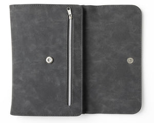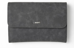 - Gray faux suede clutch