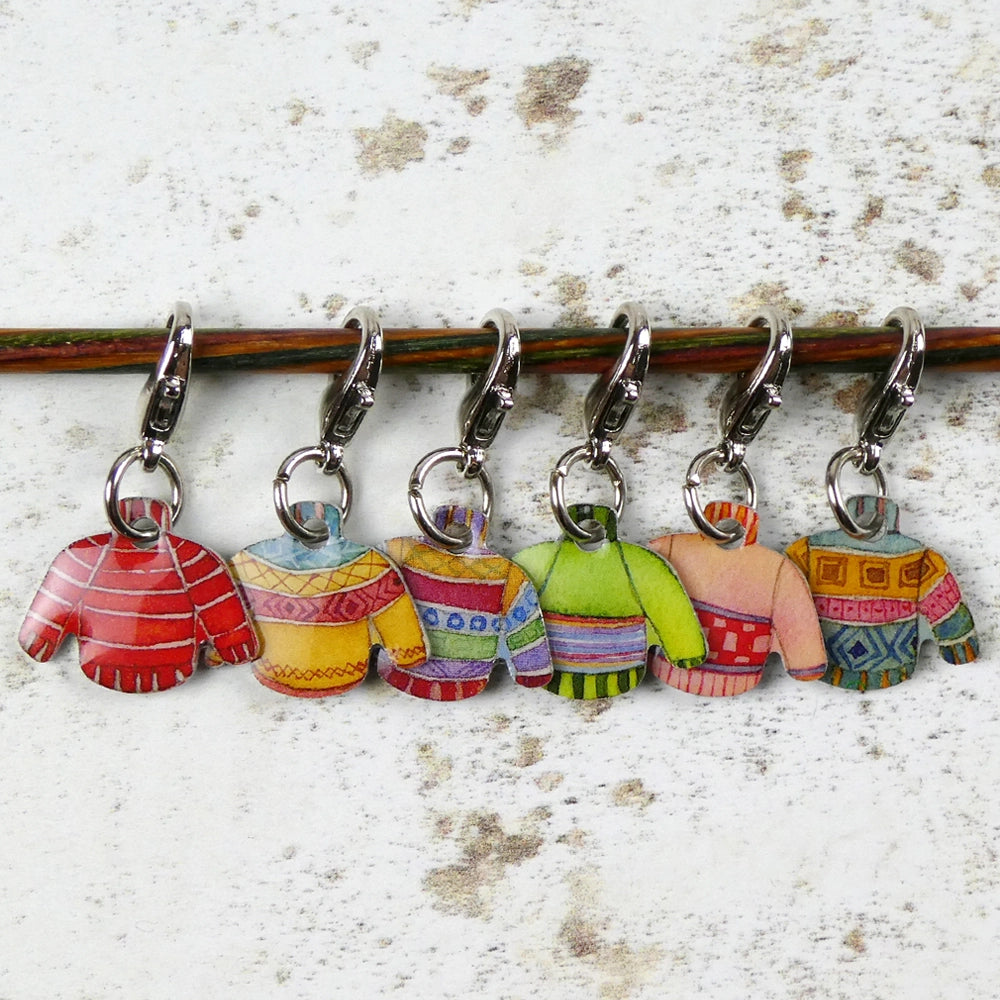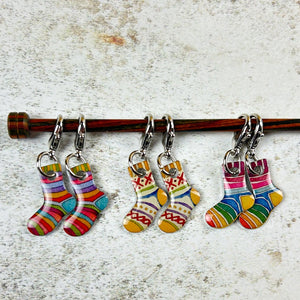 Delightful locking stitch markers printed on lightweight aluminum and finished with a glossy protective varnish. Perfect for both crochet and knitting, these markers open and close easily, letting you attach them directly to stitches or move them as needed.