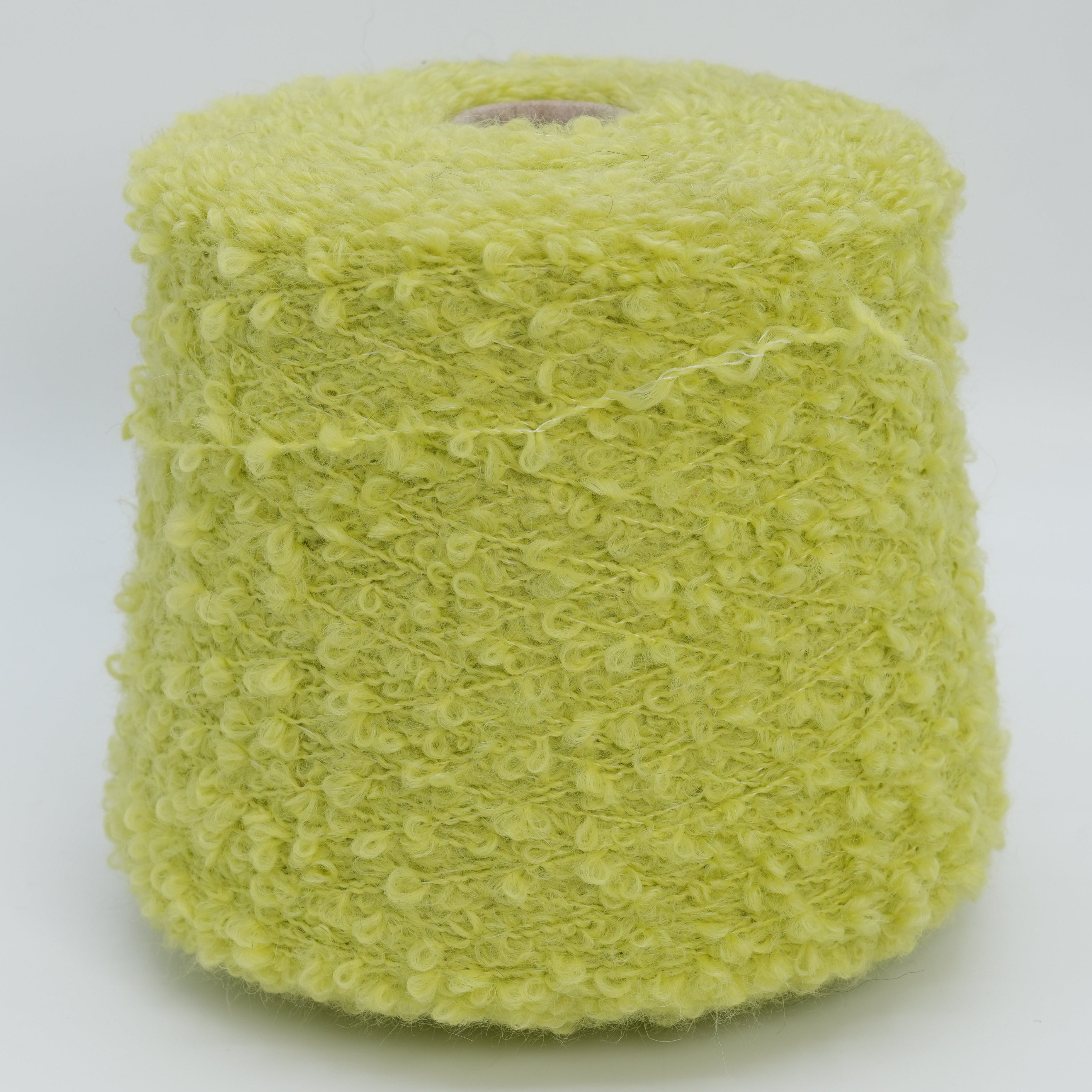 Merengue 2000 by Pecci Filati S.P.A. is a luxurious bouclé yarn combining 76% alpaca, 14% wool, and 10% polyamide in a distinctive loop construction. This sophisticated blend delivers alpaca's legendary softness and warmth enhanced by wool's natural resilience, with polyamide adding durability and structure. The bouclé construction creates dimensional, textured fabrics with organic irregularity, tactile appeal, and contemporary aesthetic. The looped surface produces interesting visual effects with excellent coverage and cozy hand feel.