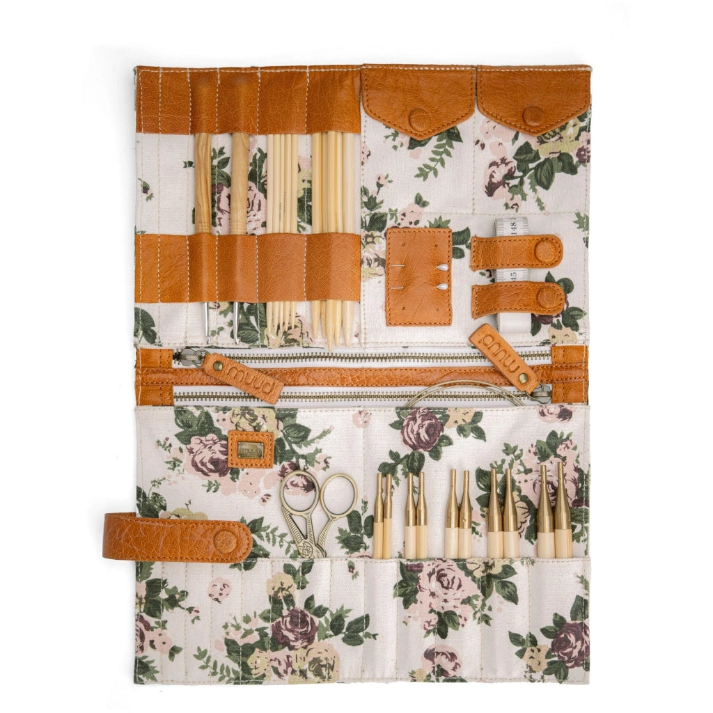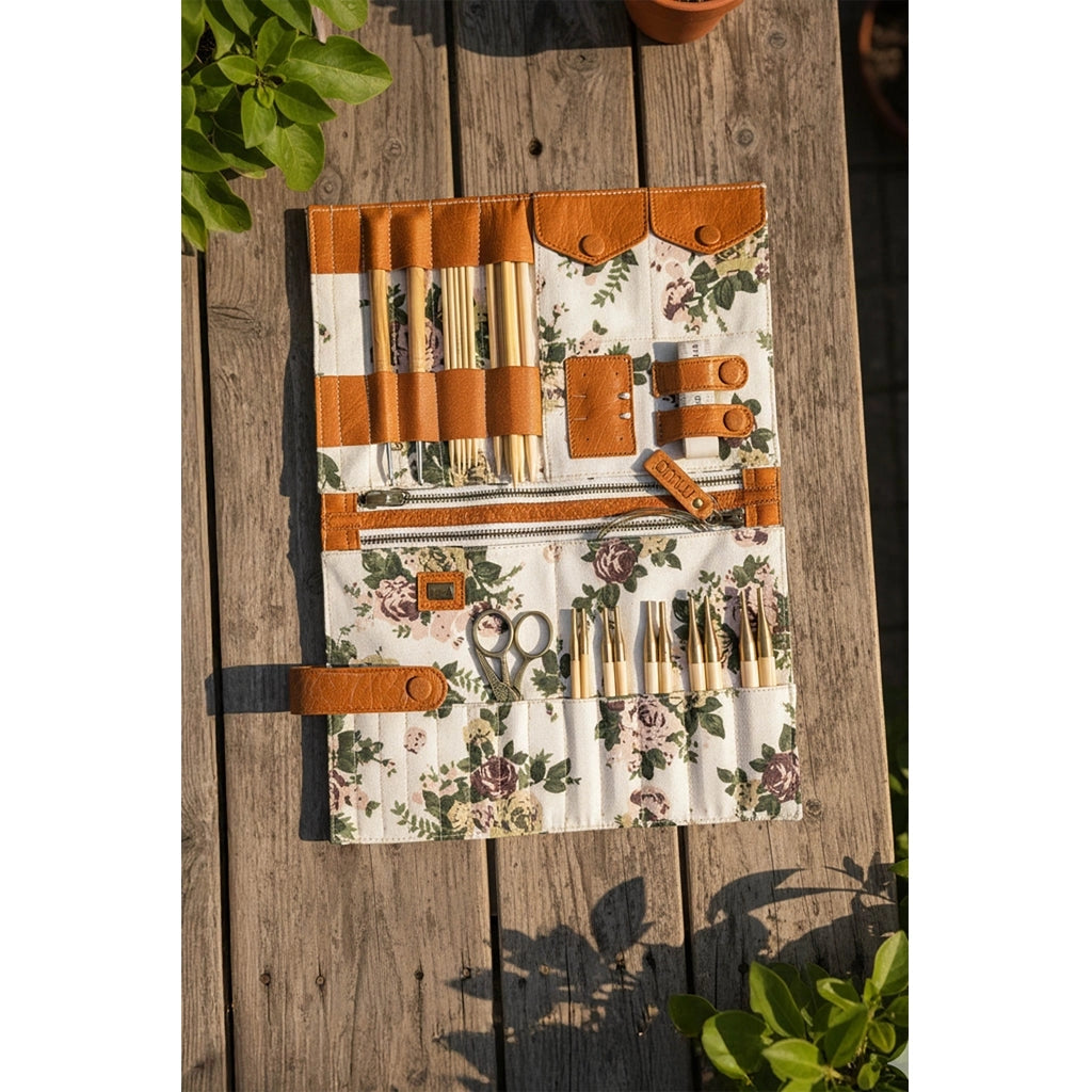 The Muud Billie is a beautifully crafted needle organizer designed for knitters and crocheters who refuse to compromise on style or practicality. With 19 pockets for knitting needles and crochet hooks, two interior pockets with button closure, small holes for needles, and two larger zippered pockets, Billie has room for virtually everything — needles, hooks, interchangeable tips, wires, scissors, measuring tape, and stitch markers.