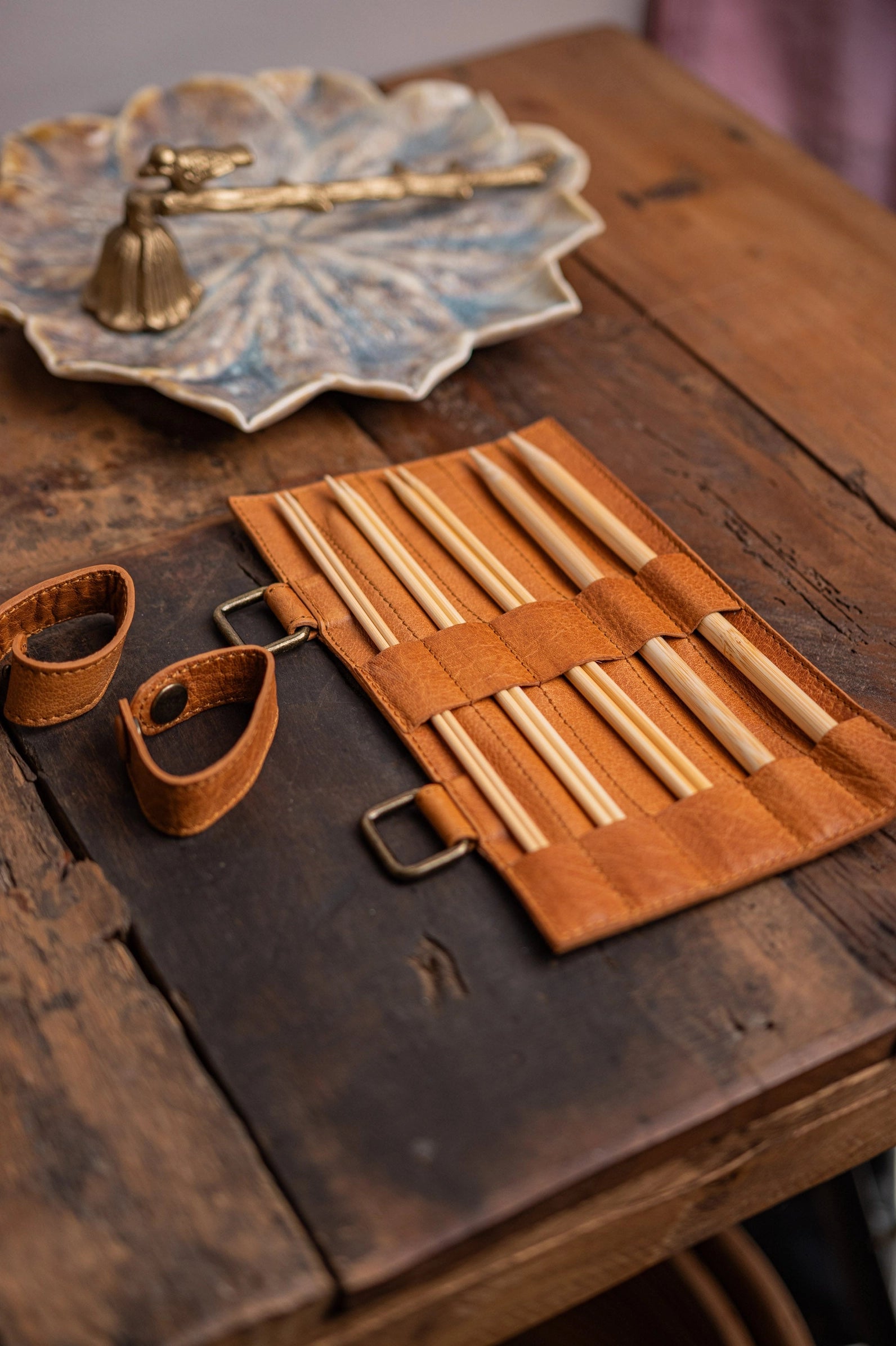 The MUUD Carita C is a detachable leather case designed for double-pointed knitting needles, handcrafted from the finest quality leather to combine timeless beauty with practical function. Elegant and durable, it’s the perfect way to keep your needles organized both at home and on the go.