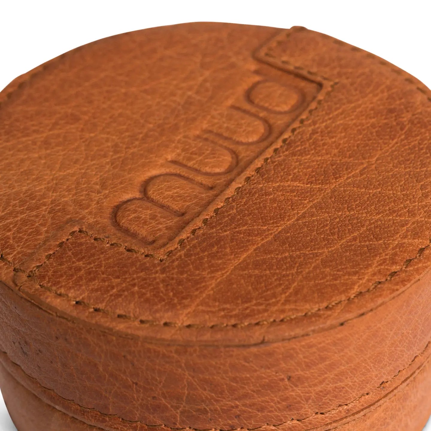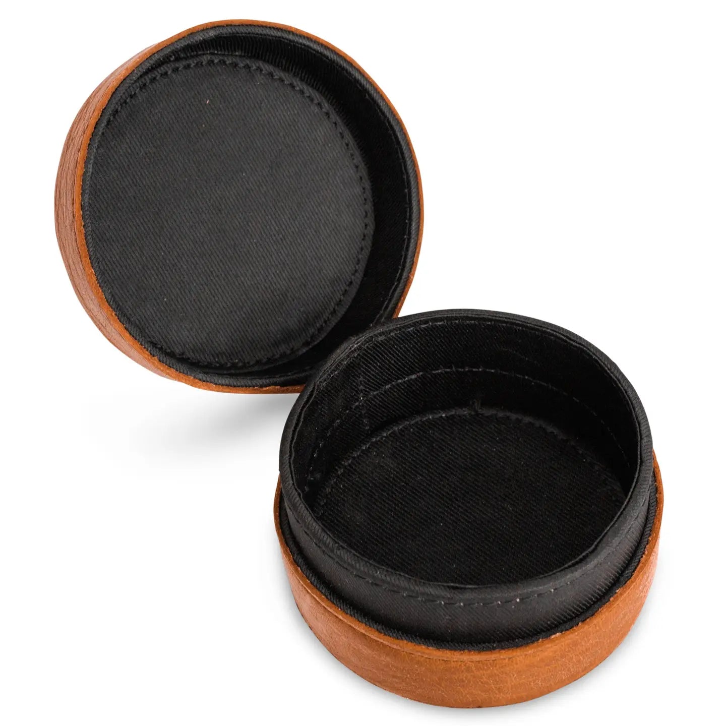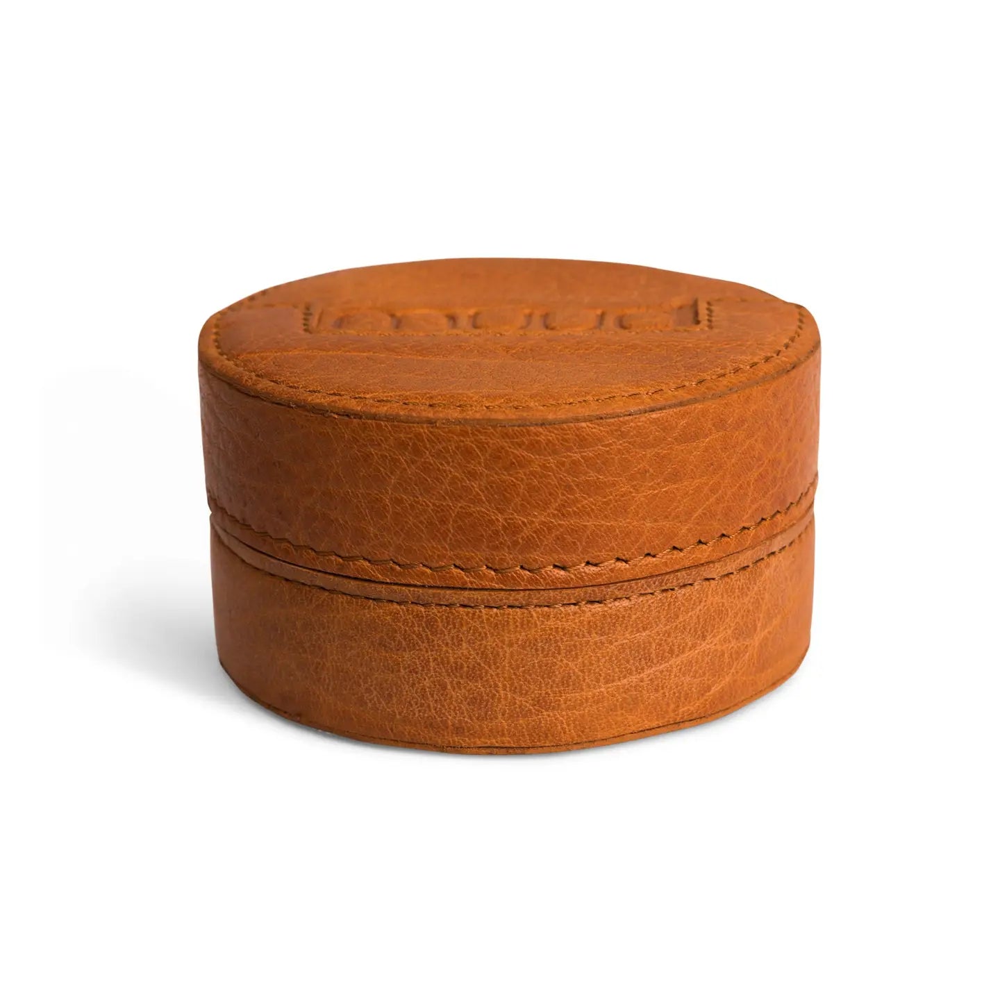 Emeli is a small round case designed for makers who appreciate both function and form. Crafted from genuine leather, it keeps your tiny essentials securely in place — whether you're working at home or taking your projects on the go.