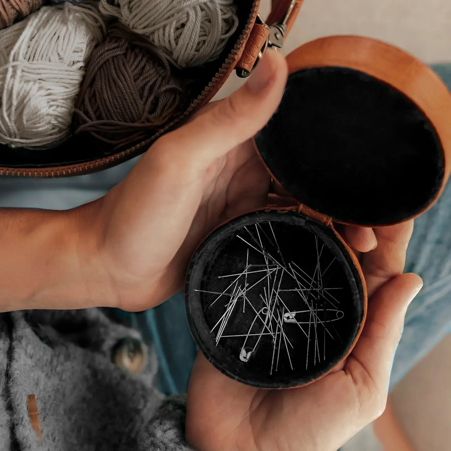 ✨ A compact magnetic leather box for storing needles, thimbles, beads, buttons — and all the little tools that love to disappear when you need them most.