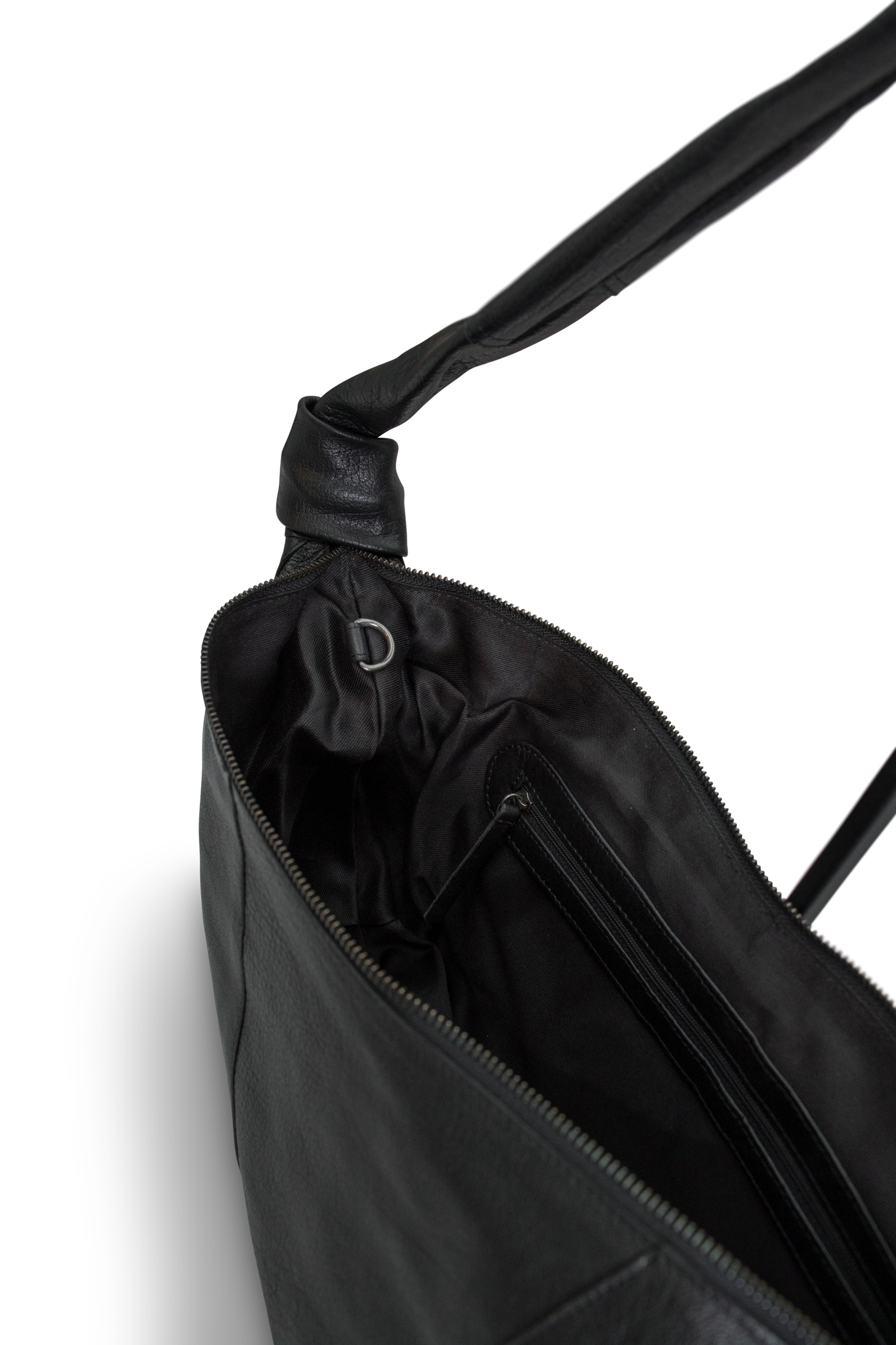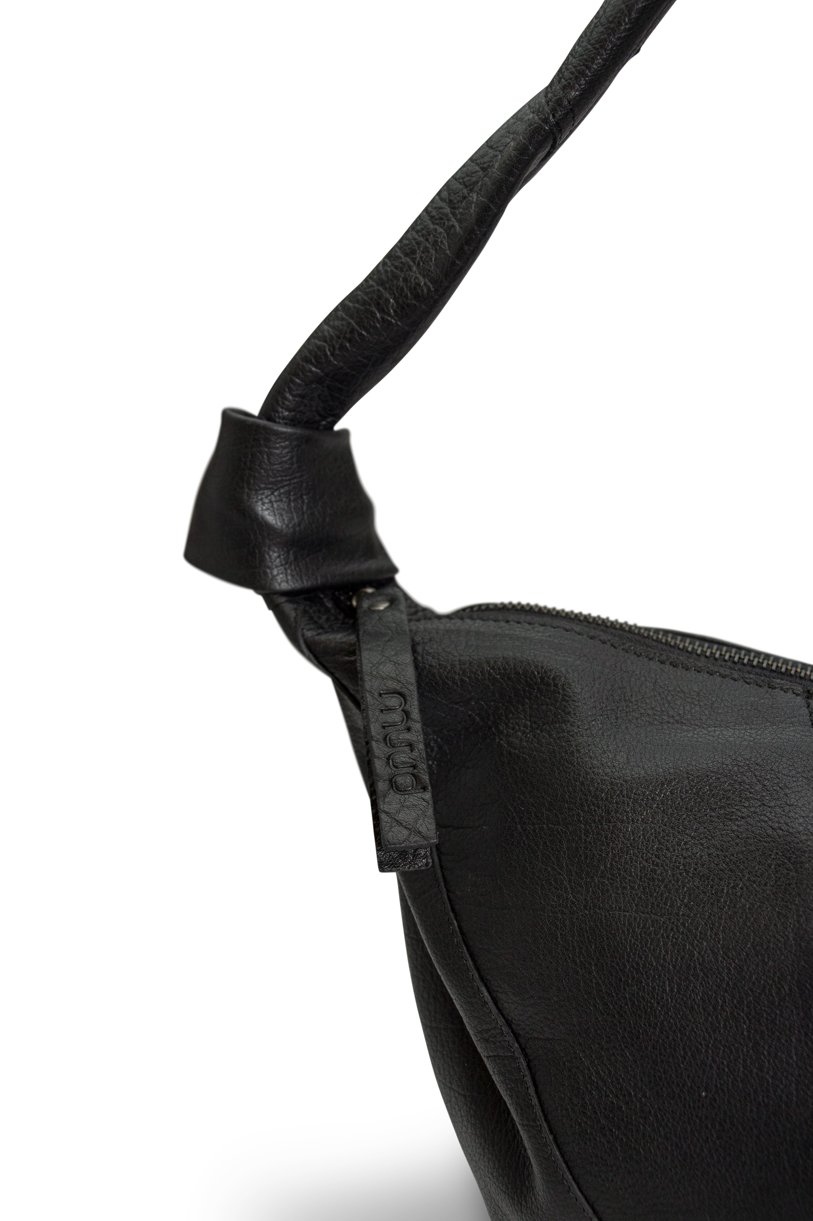 Handmade with meticulous attention to detail, the Fate features a wide opening for easy access and a secure zipper closure to keep your belongings safe. The signature knotted strap detail on one side adds a modern sculptural touch, making it both functional and fashion-forward. Inside, the bag includes two zippered side pockets lined with soft leather for organizing smaller essentials.