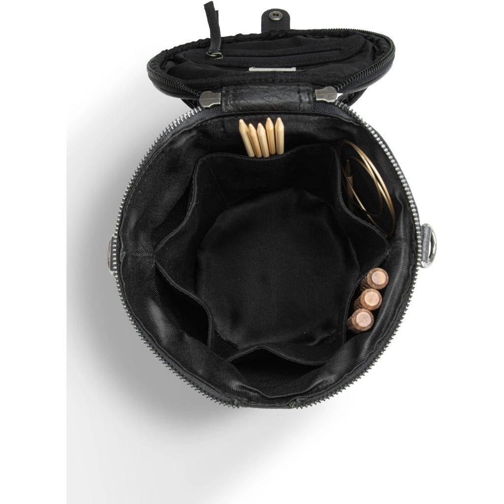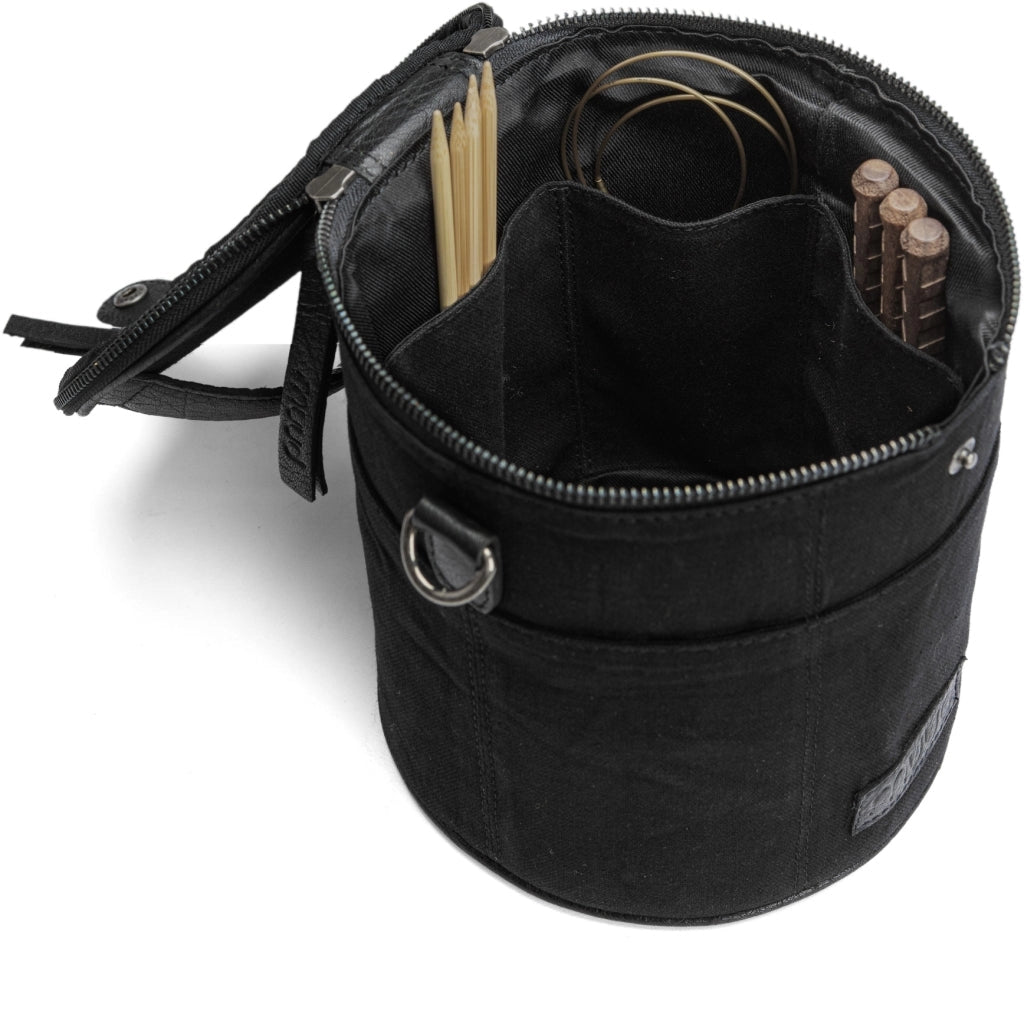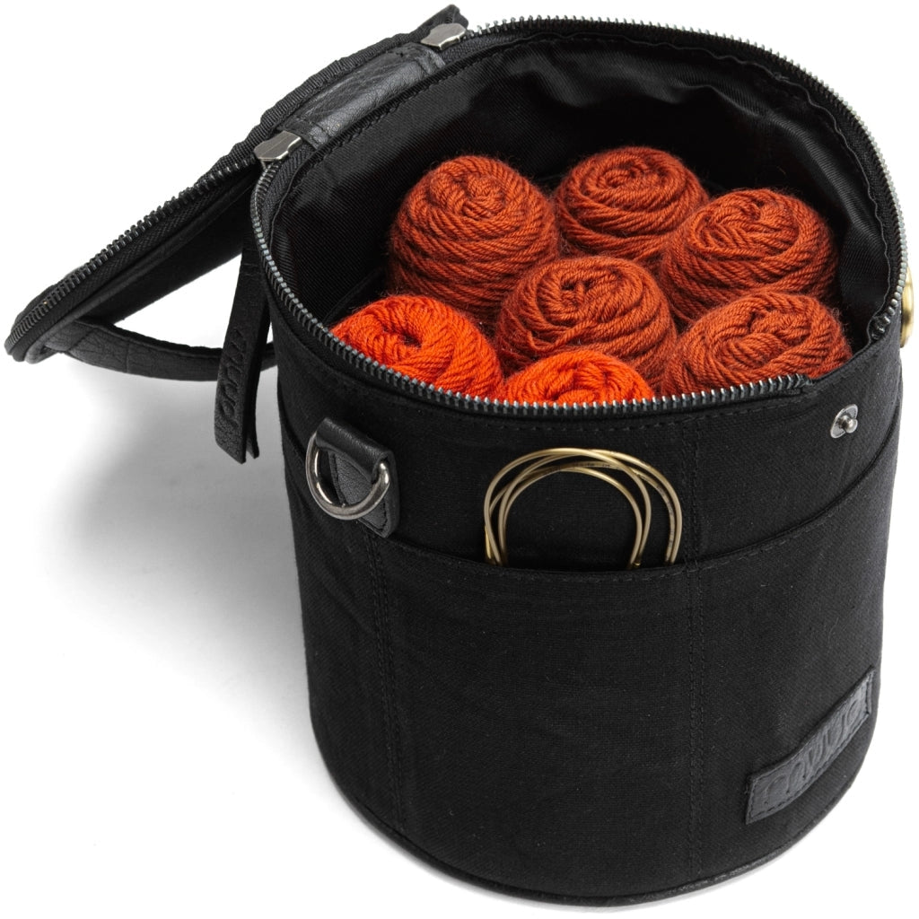 Practical pockets on both the inside and outside provide ample space for your knitting essentials. Two small openings by the zipper let you feed yarn directly from the bag while you knit — keeping your yarns tangle-free and your hands free to focus on the work.