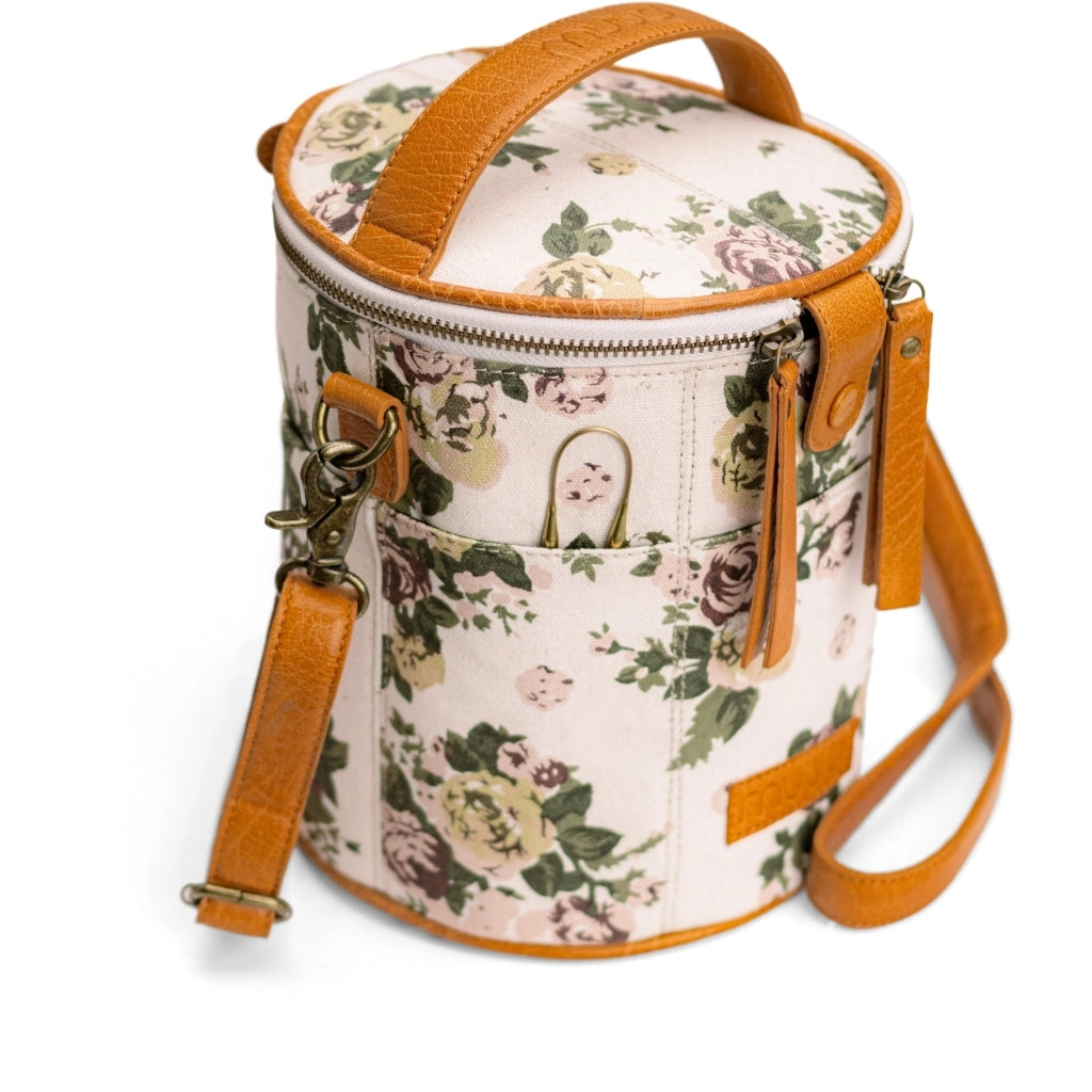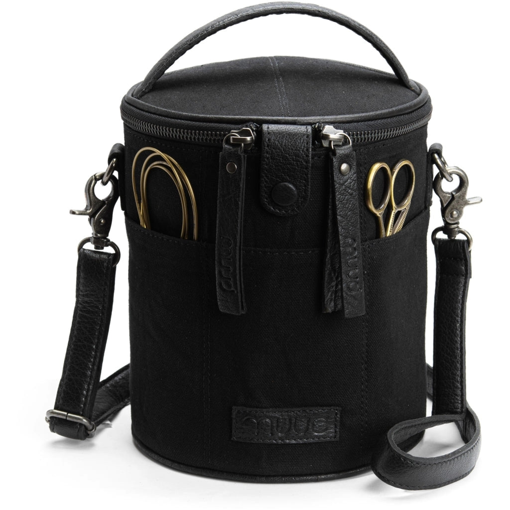 The Muud Saturn Limited Edition brings everything you love about the original Saturn design, now enhanced with an exclusive adjustable shoulder strap for crossbody wear. Handmade from durable textile with genuine leather details, this special edition is as beautiful as it is practical — perfect for taking your creative projects on the go, using as stylish yarn storage at home, or doubling as an elegant toiletry bag when you travel.