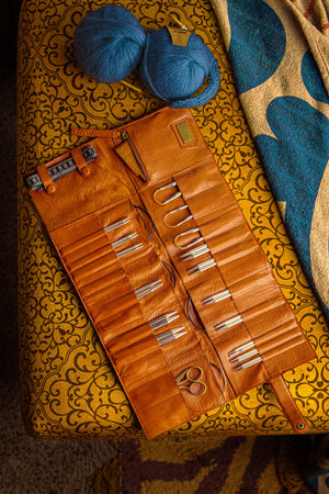 Elegant and durable, Stockholm XL is perfect for knitters who love organized storage and refined craftsmanship. Over time, the leather develops a rich patina, making each piece uniquely beautiful.