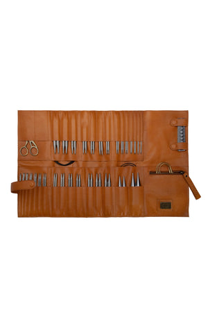 Made from premium genuine leather, the Stockholm XL combines timeless design with exceptional functionality. Inside, you’ll find slots for up to 16 sets of interchangeable knitting needles ranging from 2 mm to 15 mm, along with multiple pockets for cables, tools, and small notions. A large zippered pocket provides additional storage for accessories such as scissors, stitch markers, or measuring tape.