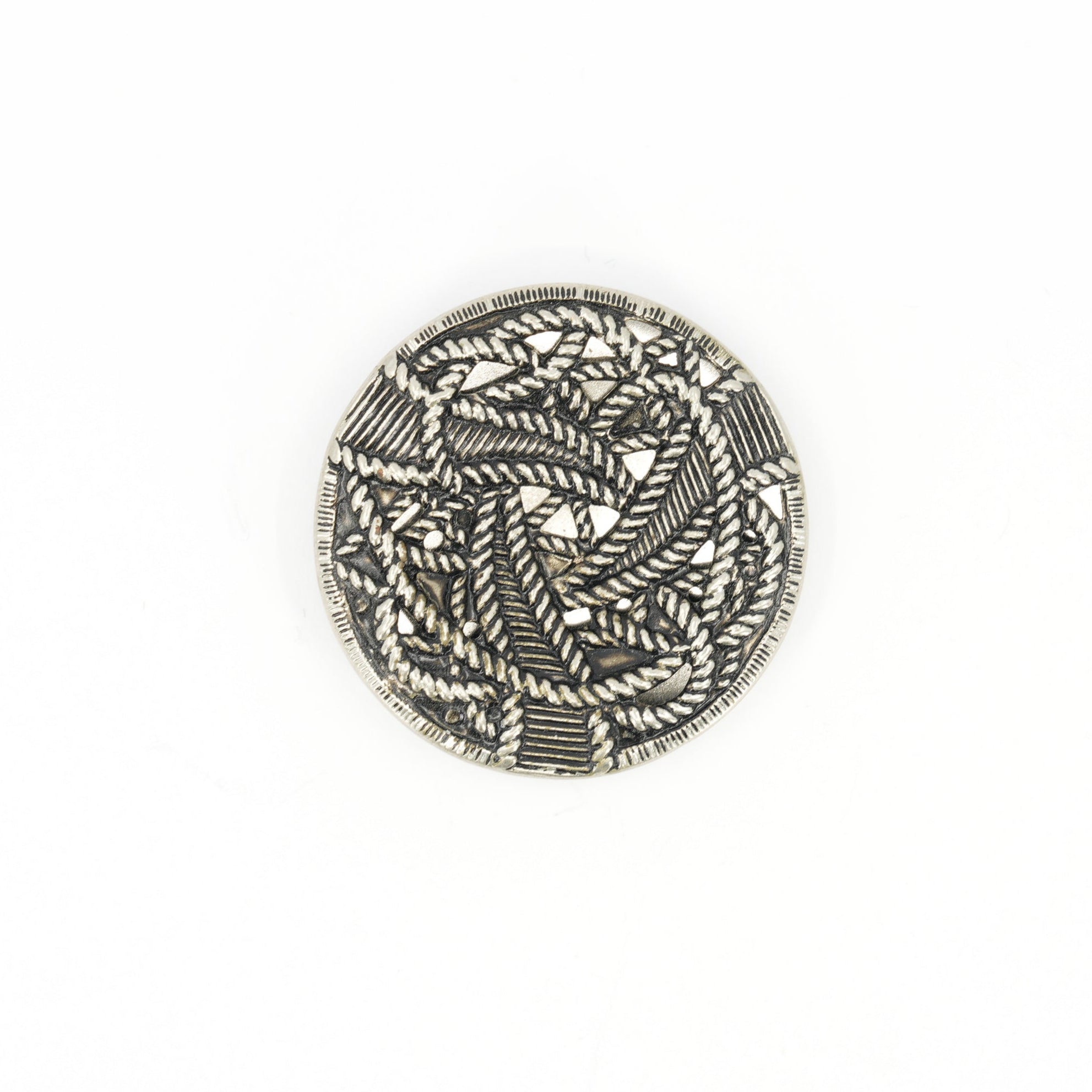 Intricate and bold, these large vintage buttons feature a richly textured surface resembling entwined ropes or threads. Cast in silver-toned metal with darkened recesses, the design plays with light and shadow, offering a tactile, almost woven appearance. Each piece is slightly domed and finished with a sturdy metal shank back.