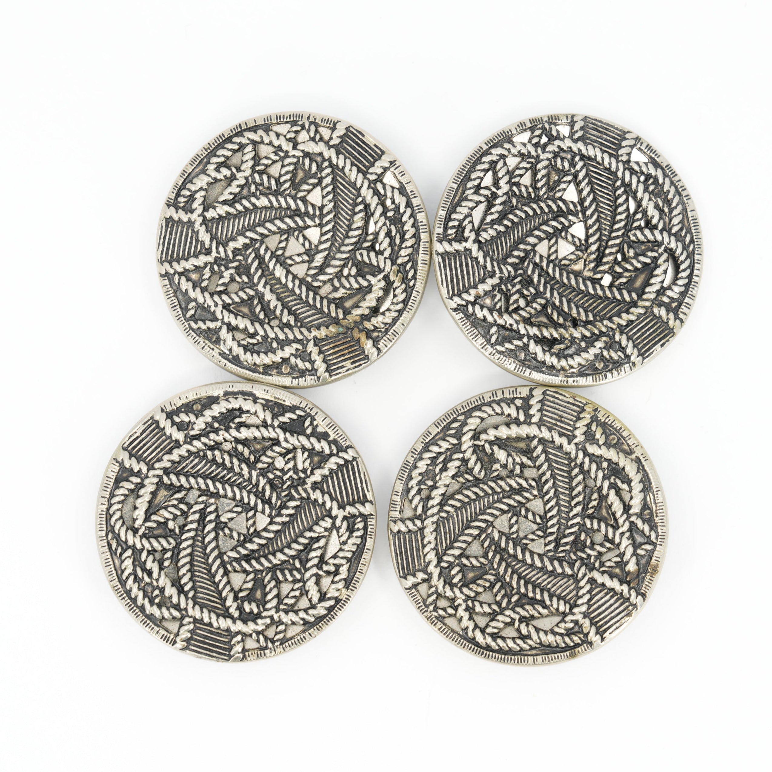 Set of 4 – Silver Embossed Filigree Buttons | 3.8 cm / 1.5 in