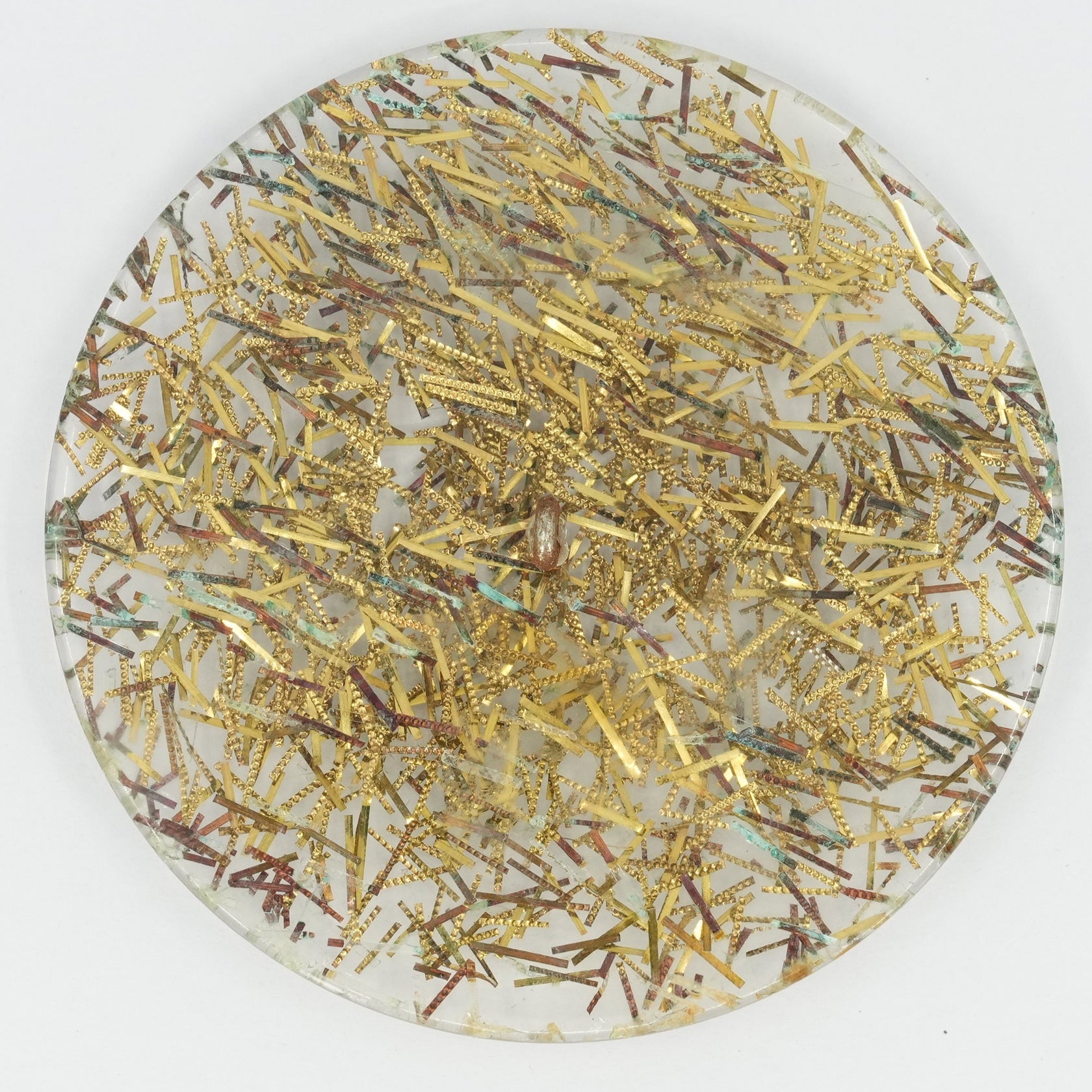 Cast resin with gold foil inclusions. Likely mid-to-late 20th century.