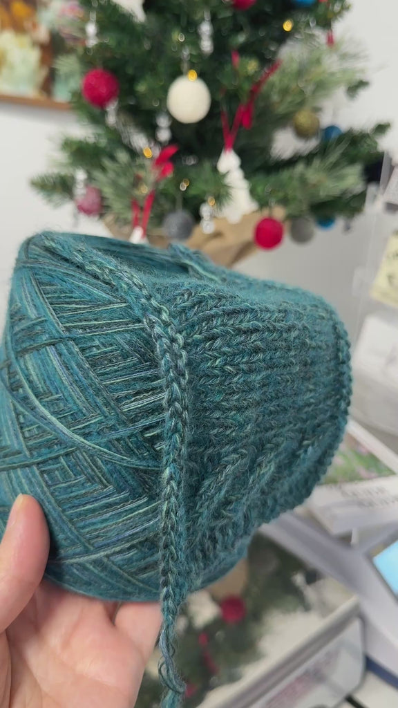 A calm, deep winter blend with a malachite-toned depth and a soft, airy halo. The brushed alpaca adds volume and warmth without weight, cashmere provides smoothness and comfort, while merino brings elasticity and structure. Silk enhances the surface with a subtle glow, and a small amount of viscose adds fluidity to the fabric. The washed sample, knitted on 4 mm needles, reveals a balanced, supple fabric that is smooth to the touch, non-itchy, and comfortable against bare skin, with clean stitch definition and an elegant, restrained character.
