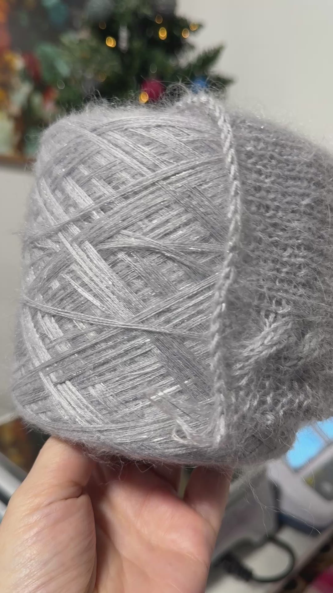 A shimmering, soft silver blend designed to catch light and attention. The mohair creates a delicate halo effect, the silk provides elegance and strength, and the cashmere adds a luxurious hand feel. A fine strand of Lurex introduces a subtle sparkle, enhancing the light-reflective quality without overpowering the softness of the yarn. Together, these fibers create a yarn that is both lightweight and resilient, ideal for delicate shawls or elegant lacework, producing garments with a refined, softly shimmering finish.