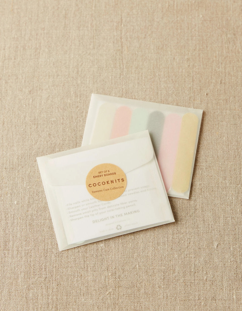 A thoughtful essential for every maker, the Cocoknits Emery Boards come in a bright and colorful set of six, perfect for stashing in project bags, pockets, or your Accessory Roll.
