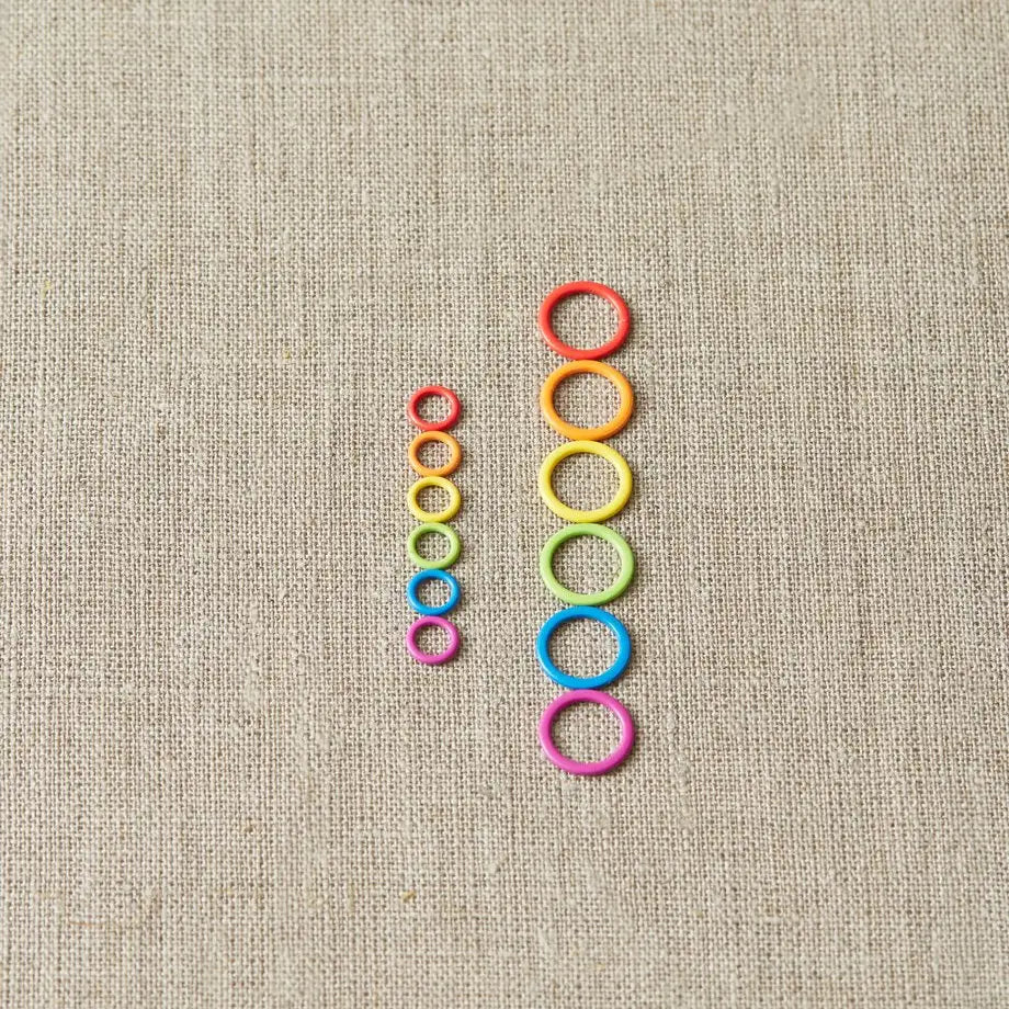 From Cocoknits, this set includes 60 nylon-coated steel markers — 10 each of 6 bright colors — designed to sit smoothly on your needles and cling to any magnet for easy storage. The colors correspond to the Cocoknits Method, where each hue marks a specific section of your sweater: sleeves, fronts, back, and more.