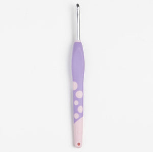 The Knit Picks Dots Crochet Hook Set is a playful and ergonomic collection designed for comfortable crocheting over long sessions. Each hook features a smooth metal tip and a softly contoured handle that supports a natural grip, suitable for both pencil and knife hold styles.