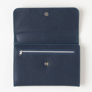 • Dark blue vegan leather clutch