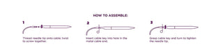 Sizing of interchangeable cables refers to the total length achieved when needle tips are attached to the cables.