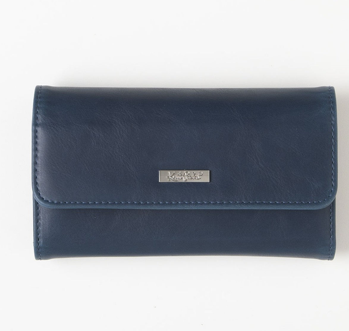 - Dark blue vegan leather clutch