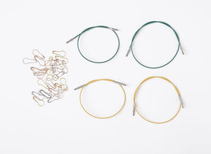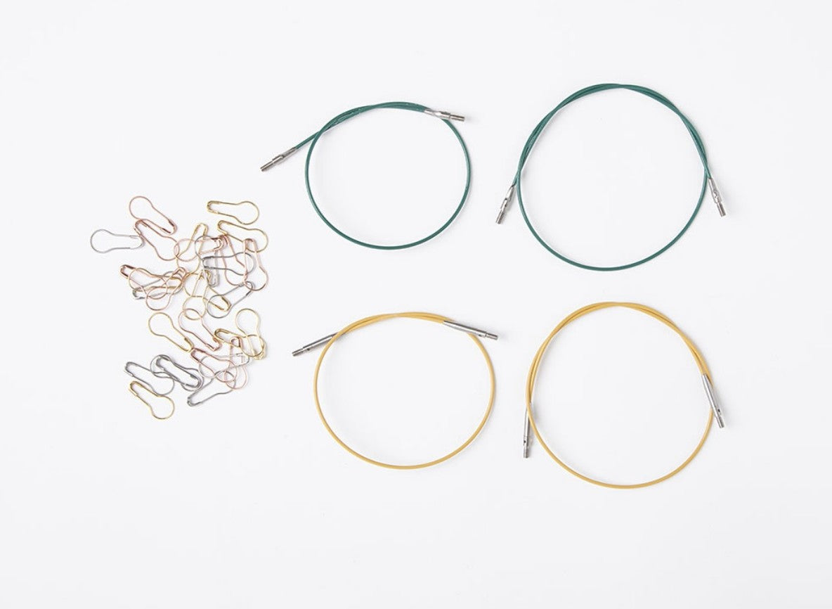 Our Resilience Interchangeable Needle sets also include thoughtful accessories: 30 metallic stitch markers, end caps, cable keys, and cable connectors for creating custom cable lengths. This set is your go-to solution for working on multiple projects simultaneously without sacrificing organization or style.