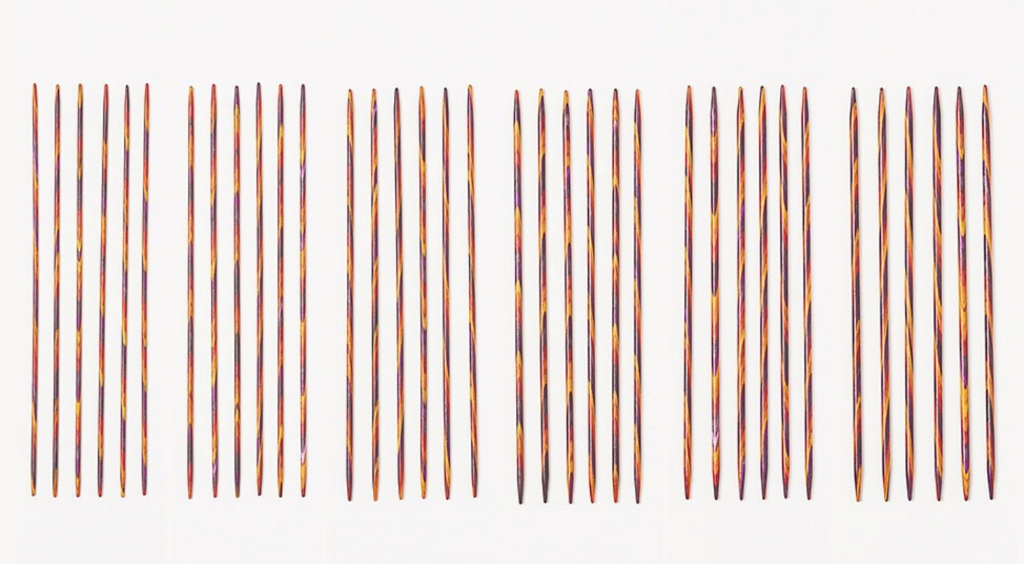 Add a spark to your knitting with Radiant! The bright, bold and warm rays of our newest needle colorway are an incandescent array of red, orange, yellow, and purple. Enjoy our hottest needles yet in classic double pointed style for socks, sleeves, and all small circumference knitting.