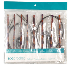 These colorful interchangeable crochet hooks are ideal for Tunisian crochet and will have you ready to start your next project whenever inspiration strikes! Simply attach one of our interchangeable cables to the end of the Radiant Interchangeable Crochet Hook, attach the cable cap to the opposite end of the cable to keep your stitches securely on the cable, and you're ready for Tunisian crochet. By combining a versatile range of interchangeable hook sizes with cables* available in 24" all the way up through 60", you'll be able to create everything from scarves and shawls to blankets and throws.