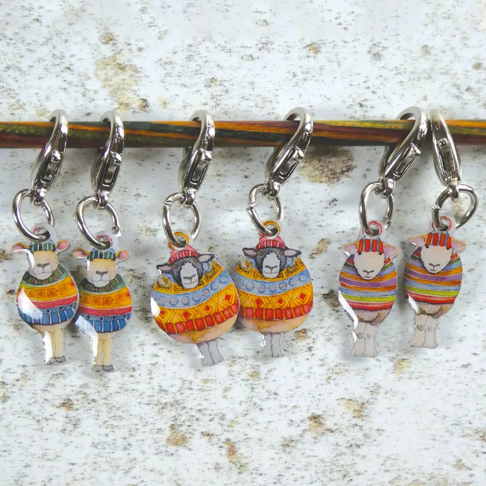 Delightful locking stitch markers printed on lightweight aluminum and finished with a glossy protective varnish. Perfect for both crochet and knitting, these markers open and close easily, letting you attach them directly to stitches or move them as needed.
