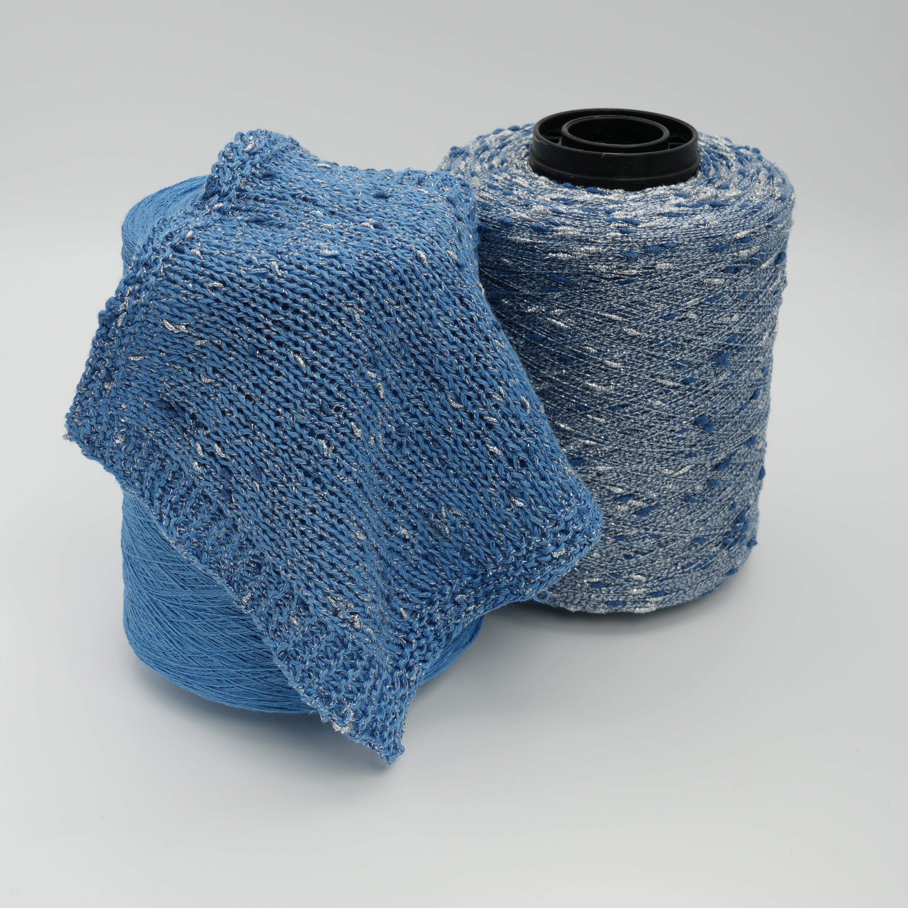 Color and sparkle may vary depending on lighting and screen settings. Subtle shifts in metallic thread are part of the yarn’s visual charm.