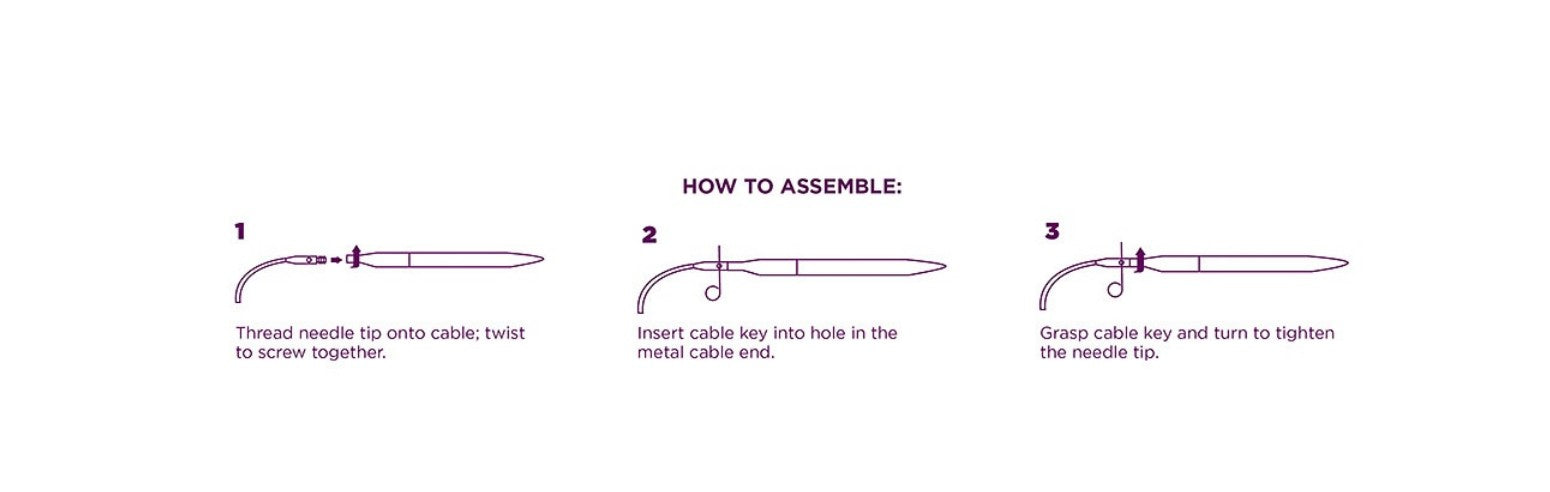 Sizing of interchangeable cables refers to the total length achieved when needle tips are attached to the cables.