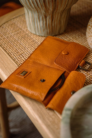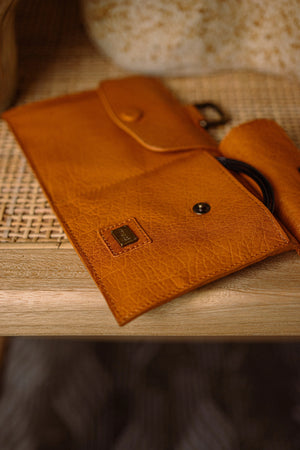 Featuring two open side pockets, the Carita H offers convenient storage for scissors, notions, small tools, or everyday essentials. Its slim profile and refined detailing make it easy to carry, while the durable leather construction ensures long-lasting performance and timeless appeal. Whether used as a standalone pouch or as part of the Carita collection, this case brings both style and functionality to your workflow.