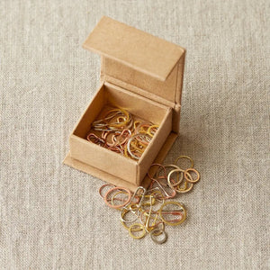 From Cocoknits, this curated set includes 54 steel-based stitch markers in three metallic finishes: gold, silver, and copper. Designed for various needle sizes and stitch types, the set comes in an elegant kraft-colored magnetic box — inspired by a Parisian chocolate truffle tin. Perfect for knitters who love both function and beauty.