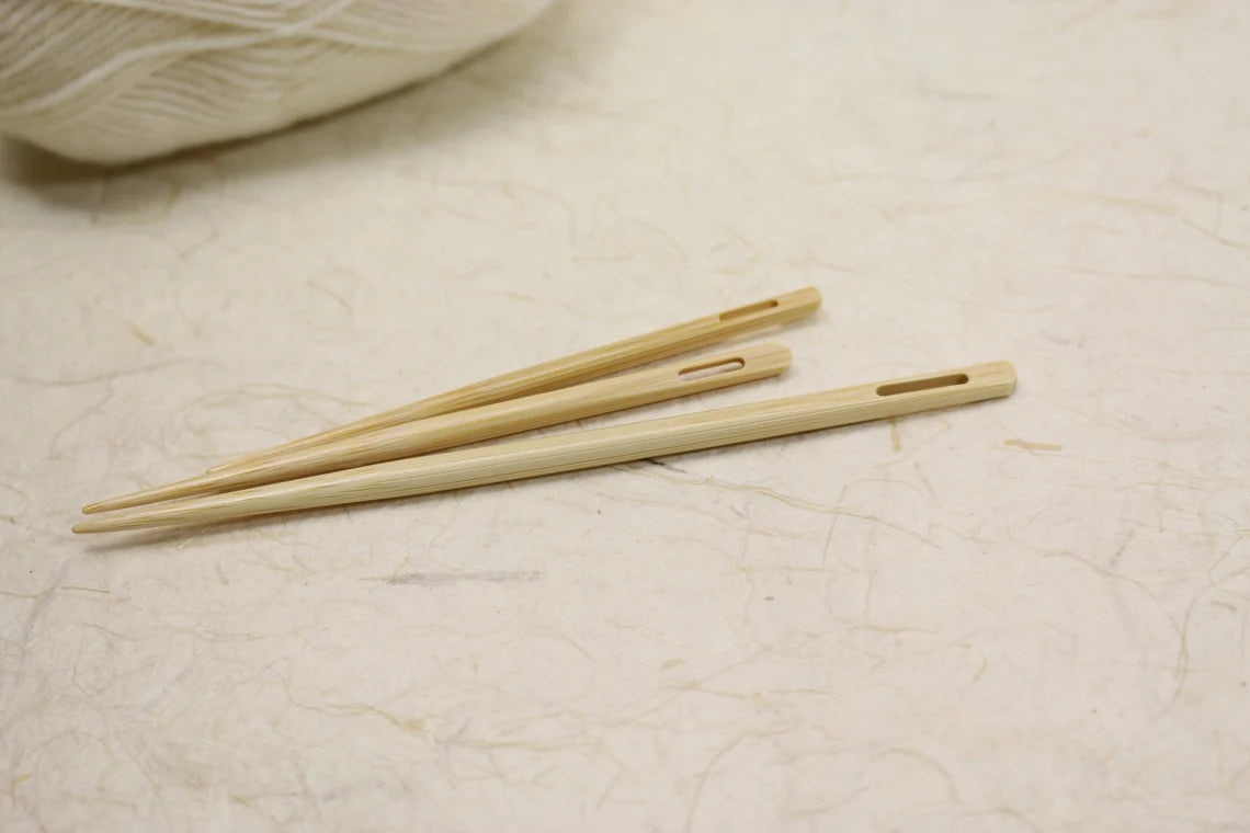 Seeknit Shirotake Bamboo Blunt Needles are beautifully crafted finishing tools designed for weaving in ends, seaming, and embroidery work. Made from premium Japanese shirotake (white bamboo), these elegant needles combine traditional craftsmanship with modern functionality for all your yarn-finishing needs.