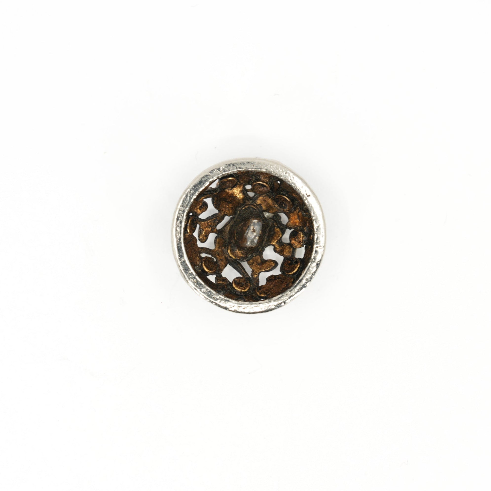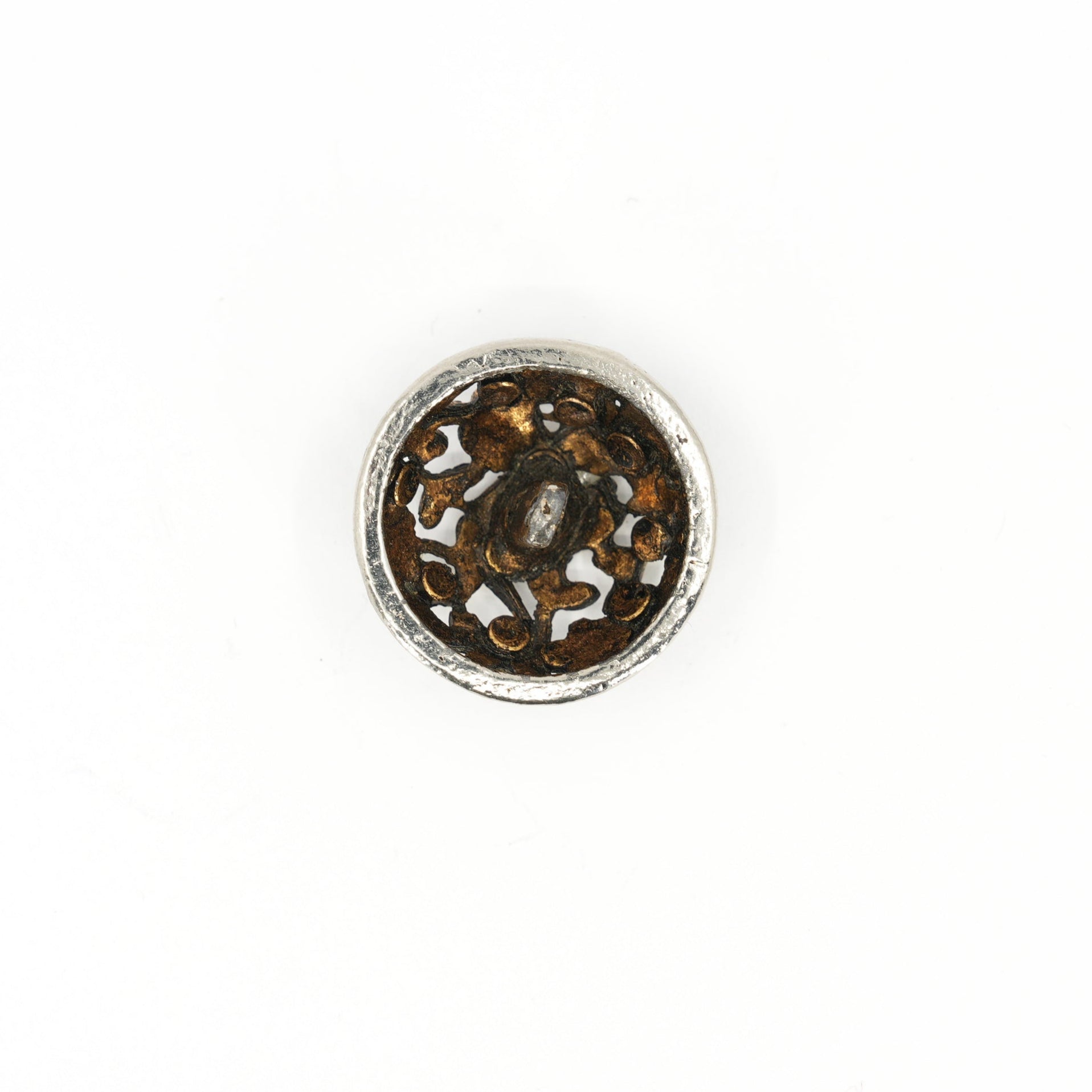 Cast metal (likely a zinc alloy or pot metal) with partial silver and gold-tone plating