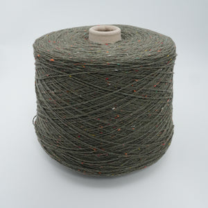 Moss Carnival Tweed 400m/100g (437yds/3.5oz), Moss Green with Multicolor Neps – Merino Wool & Silk Tweed Blend